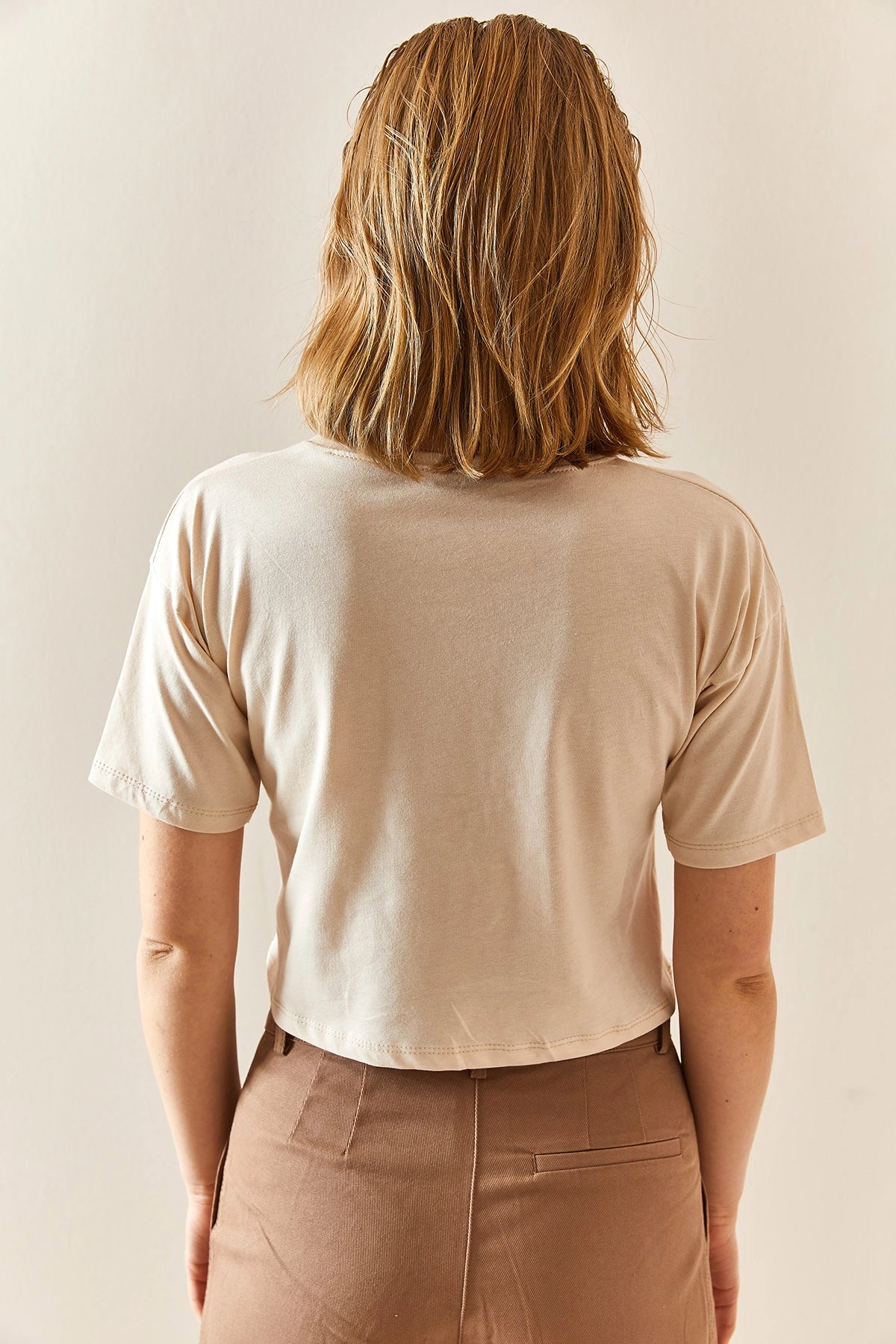 Beige Leopard Print Crop Cotton T-Shirt BC241117 - Dresden