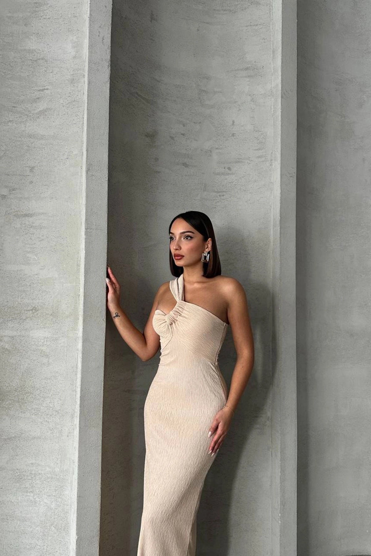 Beige One Shoulder Detailed Maxi Dress BCHN-2525455 - Esslingen