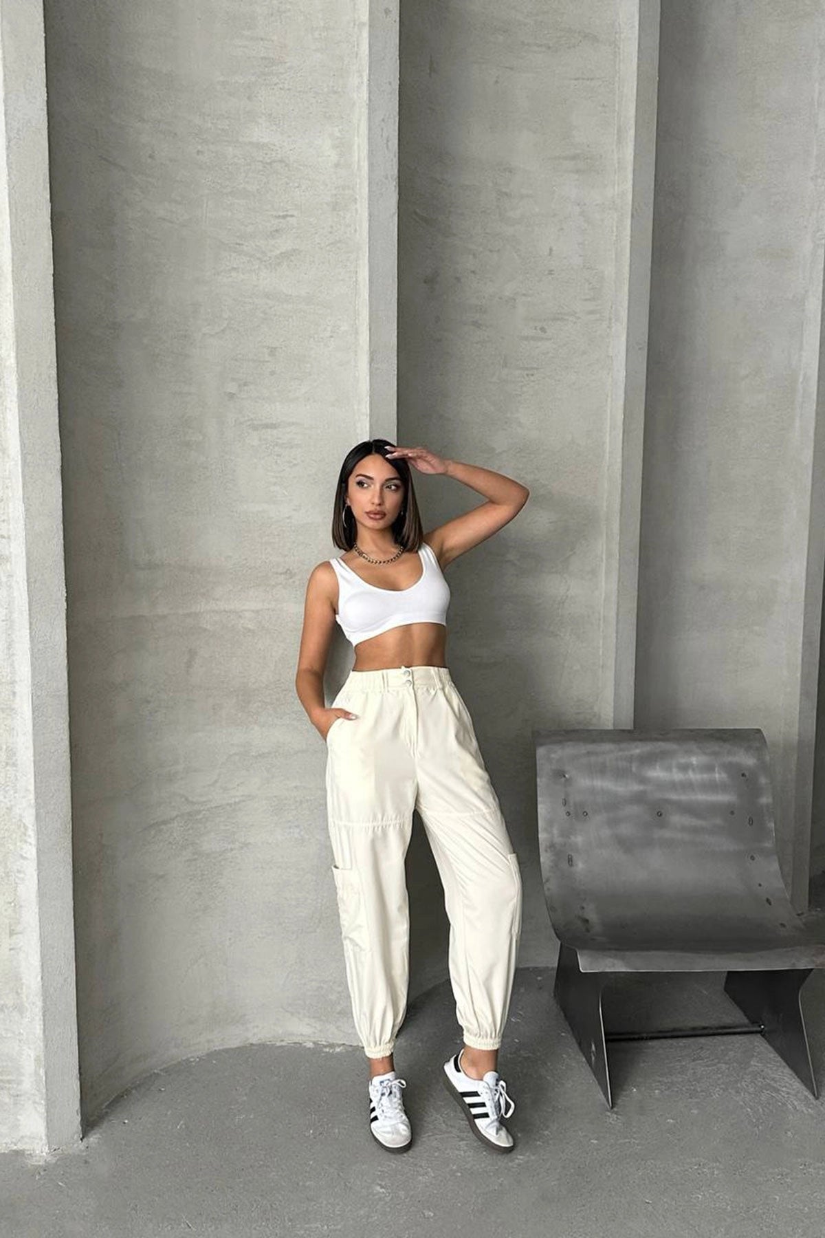 Beige Parachute Fabric Pocket Cargo Jogger Pants BCHN-2525338 - Duncanville