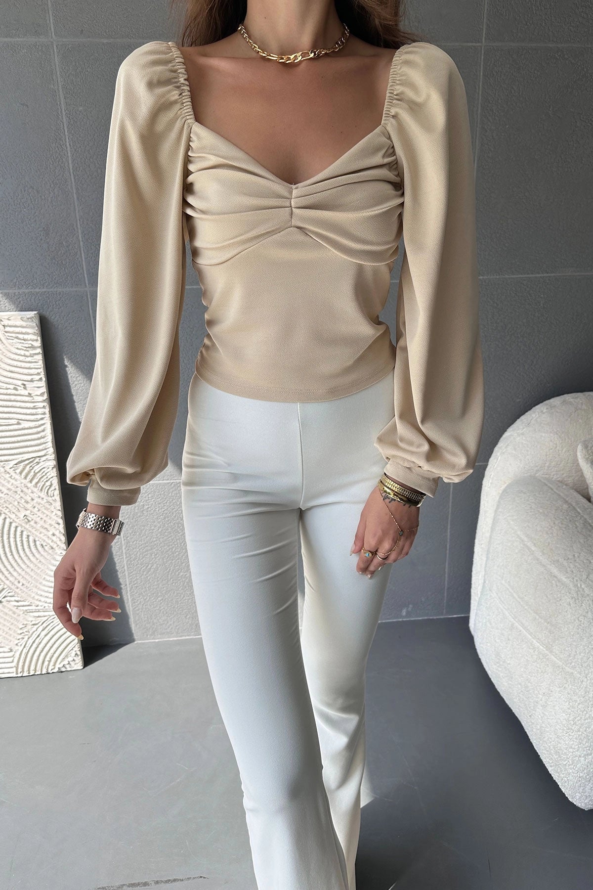 Beige Square Neck Ruffle Detail Blouse BCDF-242119 - Aguadilla