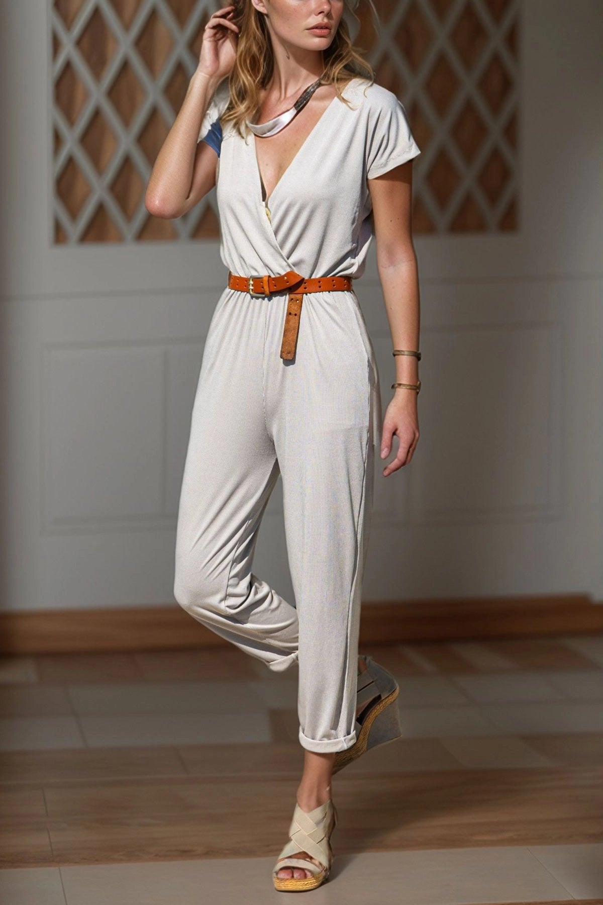 Beige Wrap Pocketed Belted Baggy Jumpsuit BCBSK-25700-2899 - Azzano