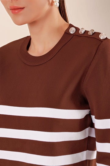 BGD Women Button Detail Striped Sweater - Brown - Avondale