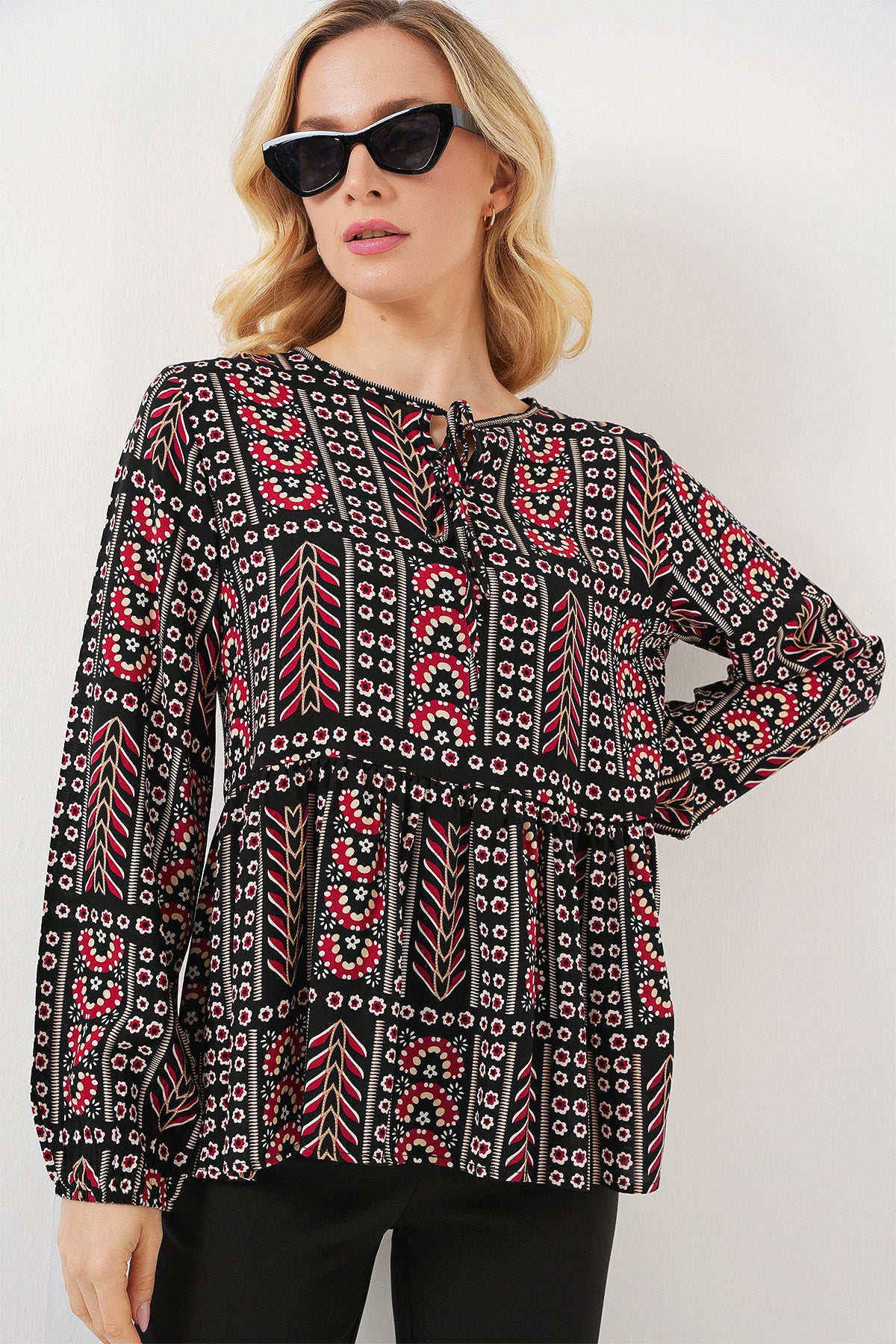 BGD Women Woman Patterned Long Sleeve Blouse 970 - Black - Las Rozas de Madrid