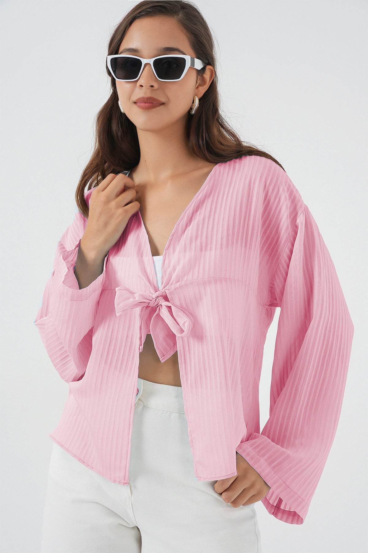 BGD Women Women's Front Lace-Up Blouse 952 - Powder - Coatepec