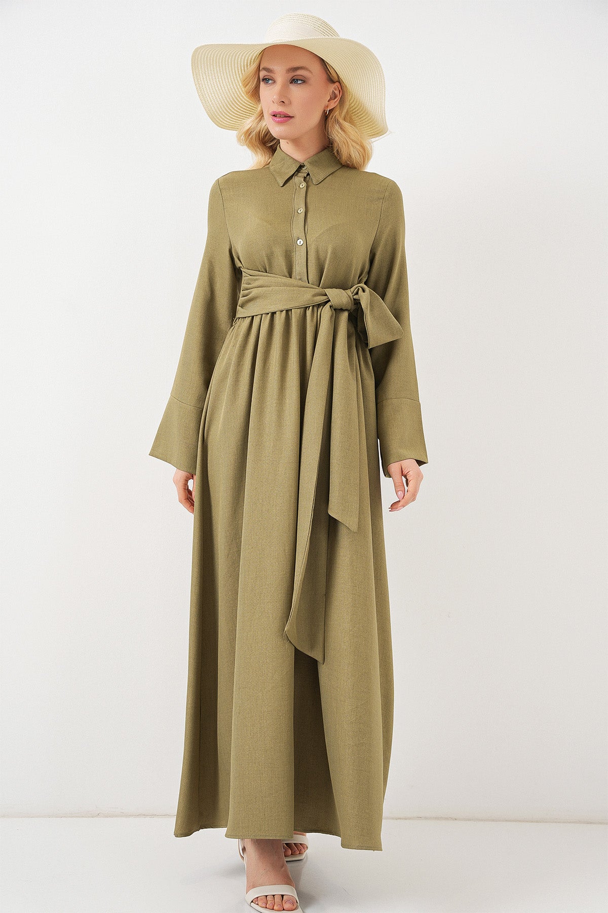 BGD Women Women's Front Tied Linen Dress 2574 - Çağla - Lower Hutt