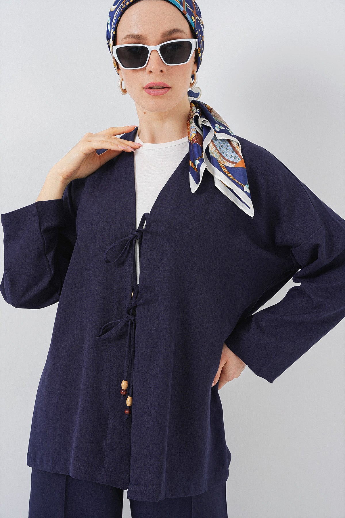 BGD Women Women's Linen Kimono Set 6727 - Navy Blue - Foothill Farms