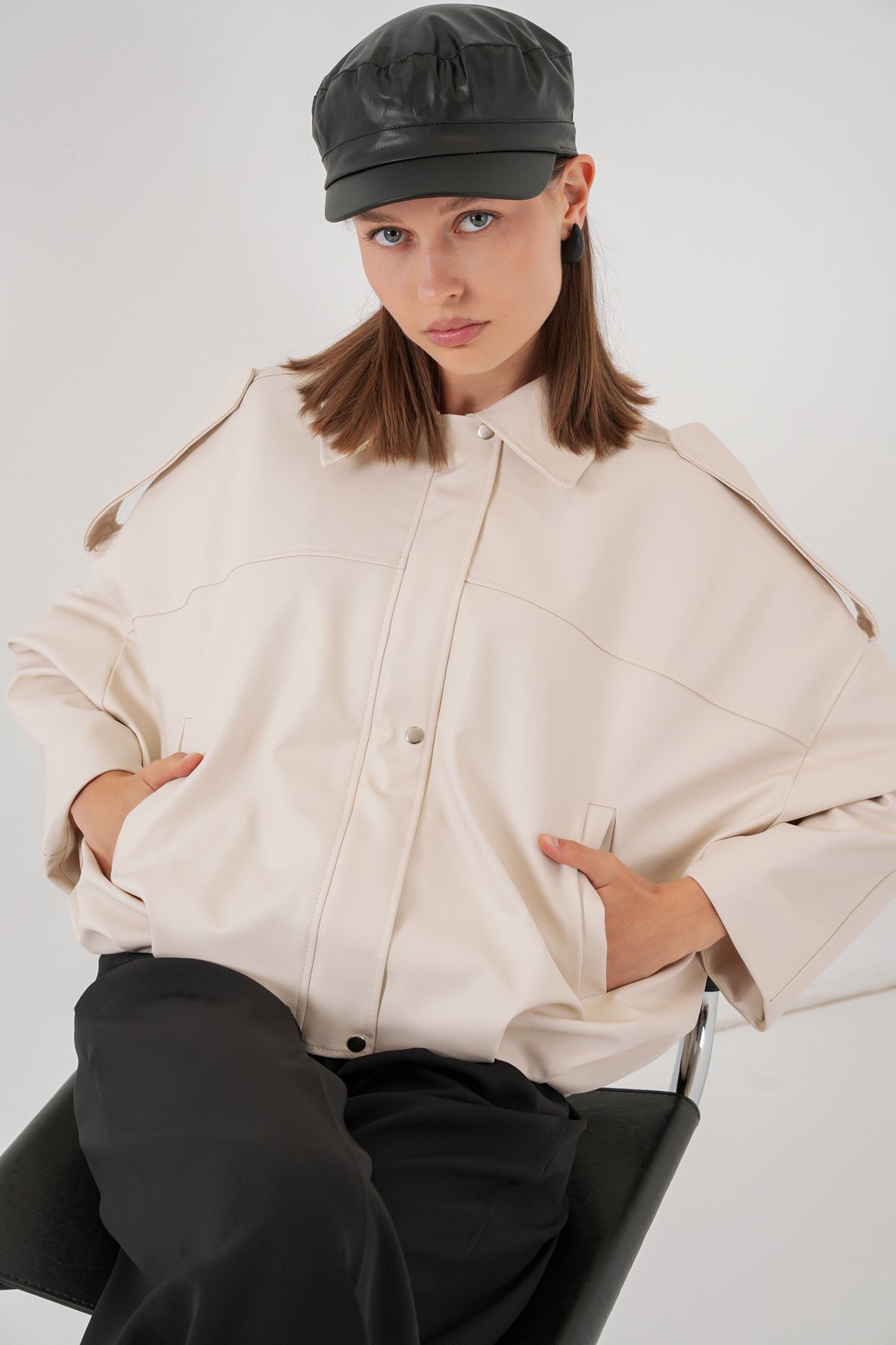 BGD Women Women's Oversize Leather Jacket 1055 - Ecru - Richland