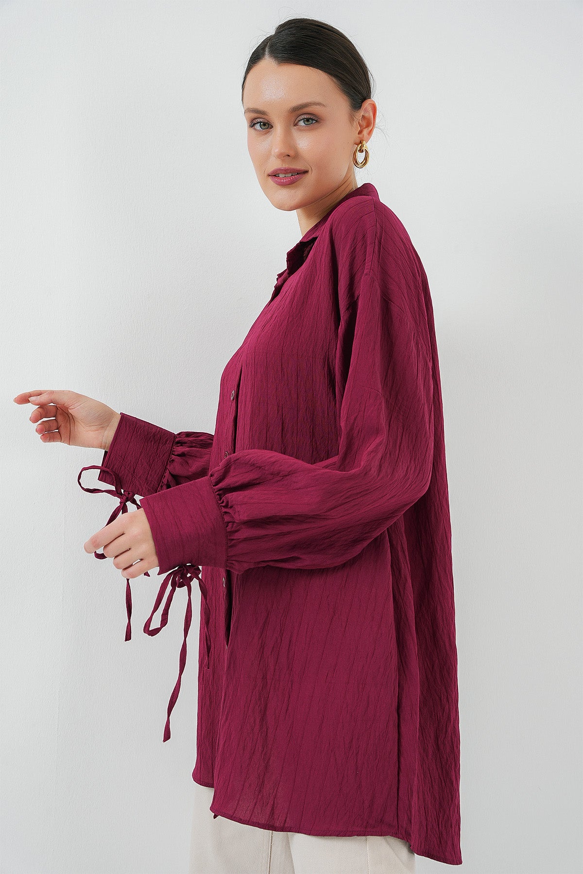 BGD Women Women's Oversized Lace-Up Shirt 5954 - Burgundy - Taylorsville