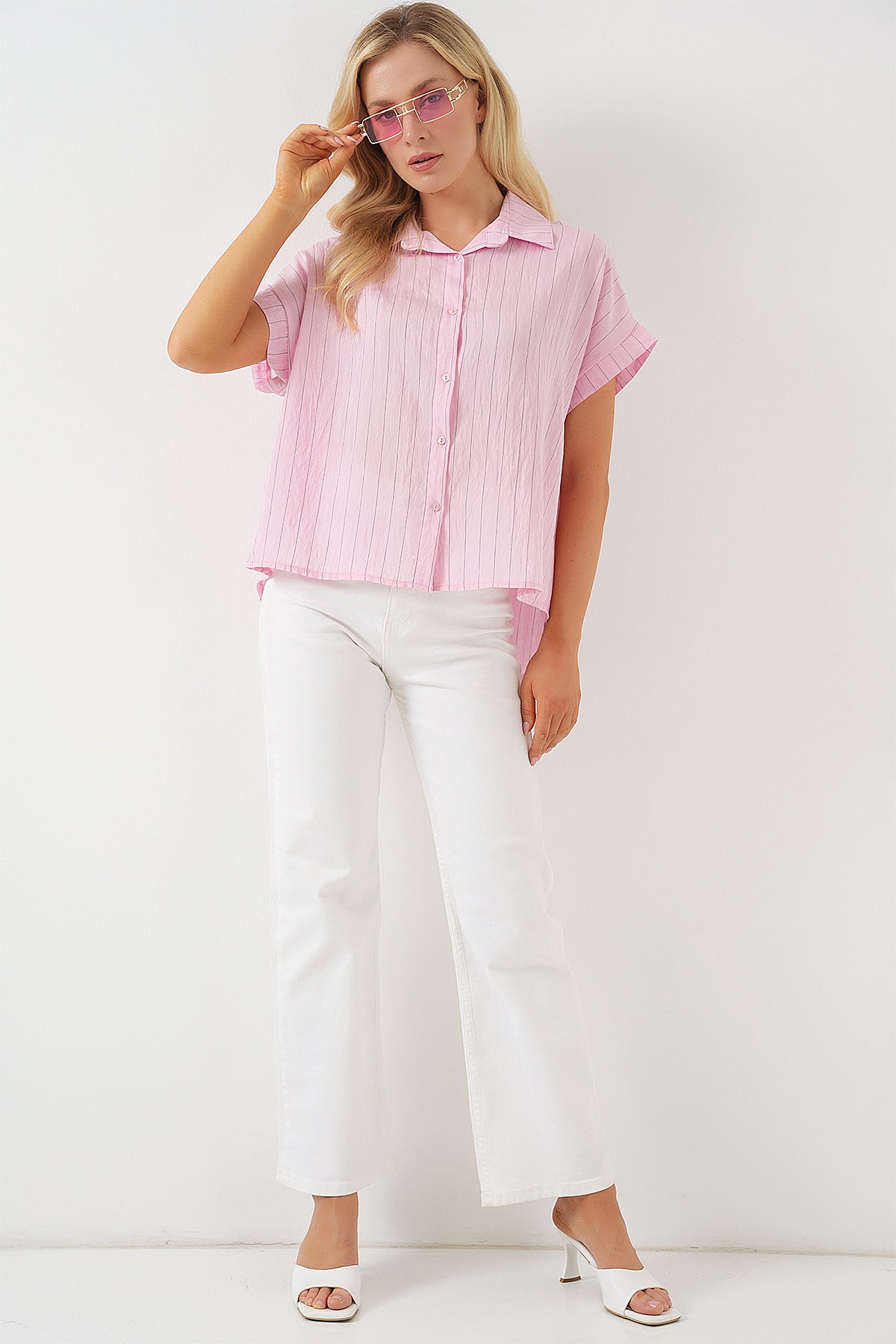 BGD Women Women's Striped Short Sleeve Shirt 20327 - Pink - Mulhouse