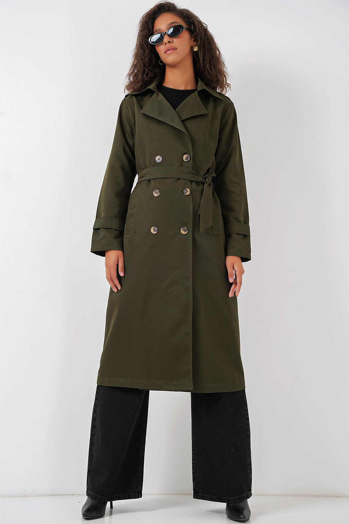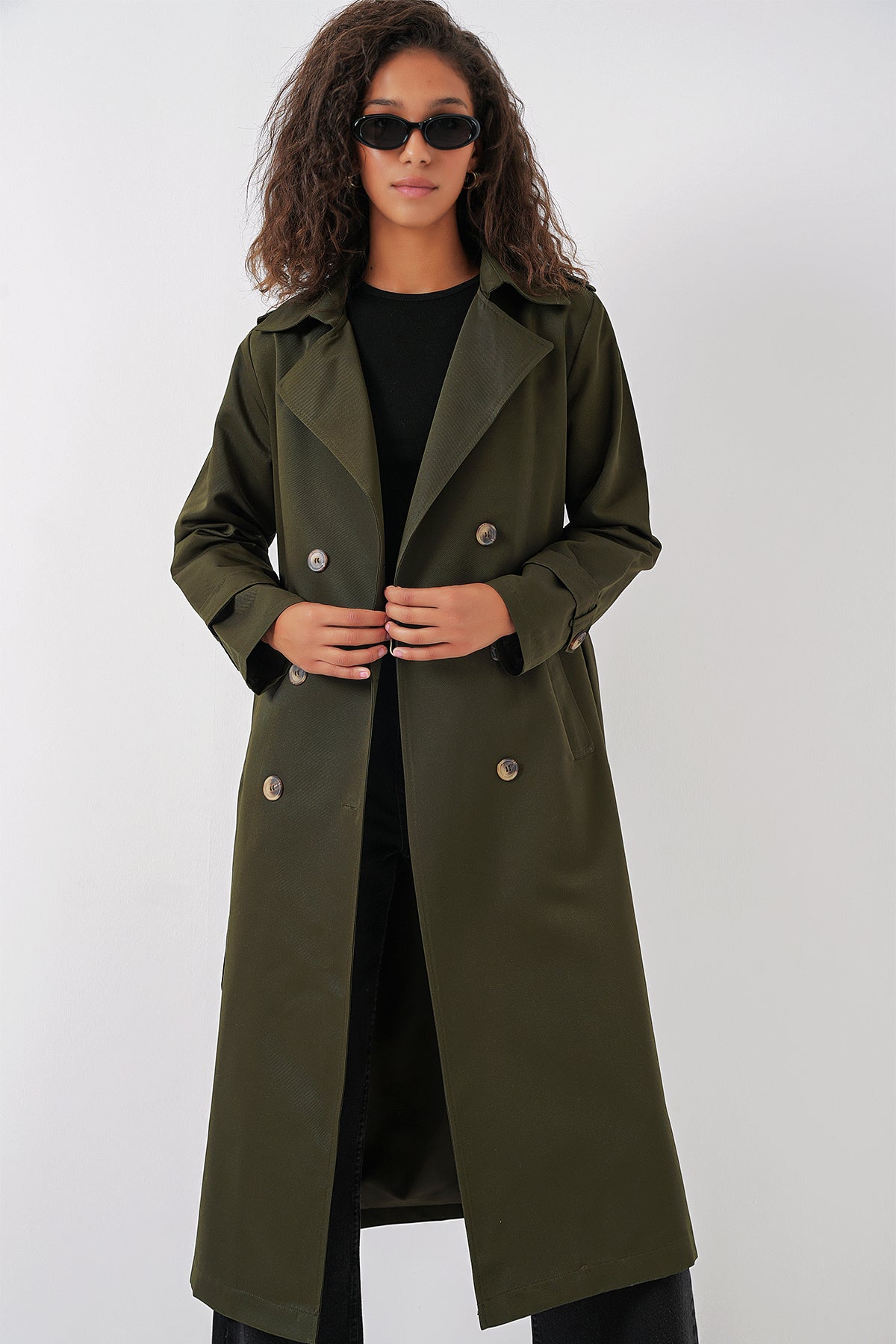BGD Women Women's Wrap Neck Long Trench Coat - Khaki - Colchester