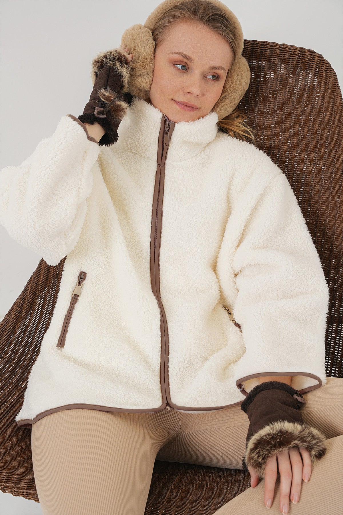 BGD Women Zippered Plush Jacket - Tan - Cedar Hill