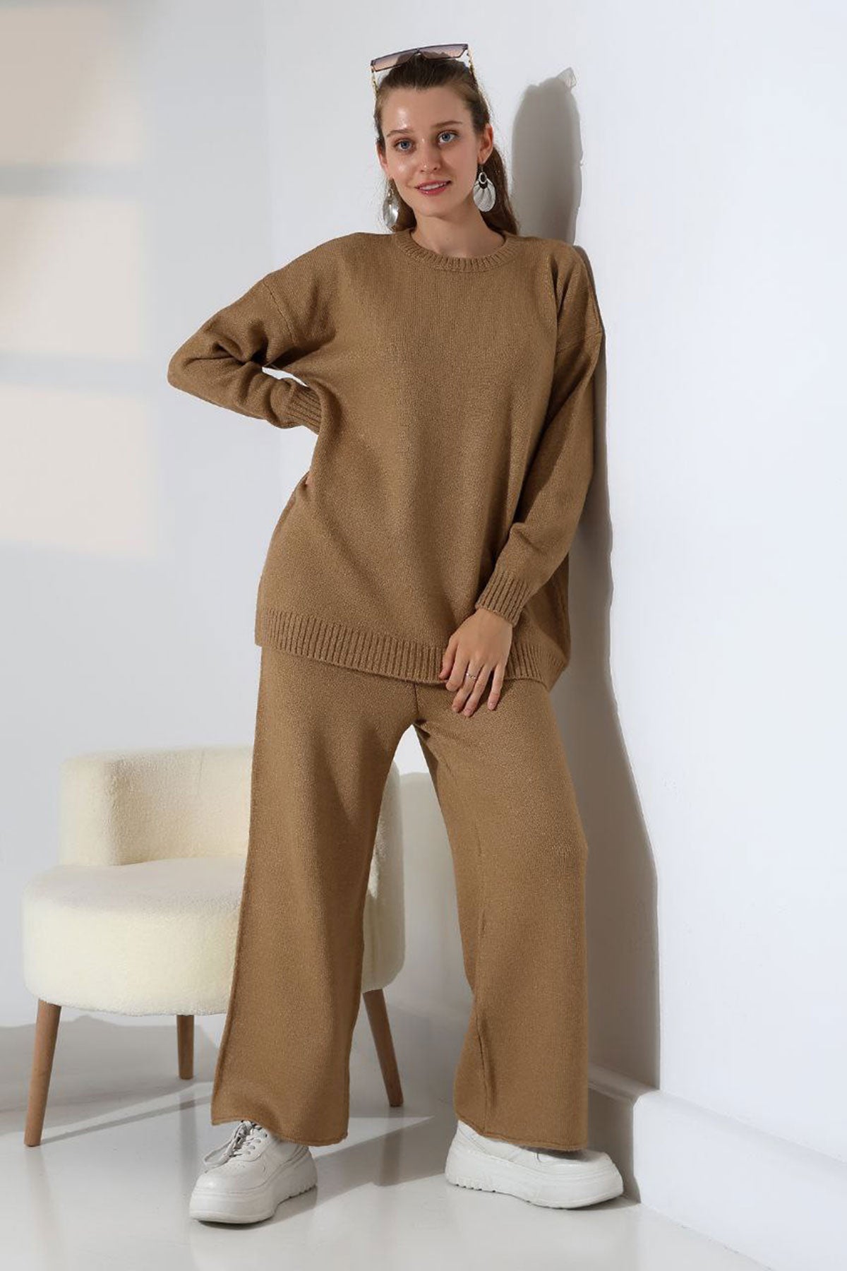 Biscuit Bicycle Collar Sweater and Wide Leg Pants Top Bottom Knit Set BCES-252005 - Garland