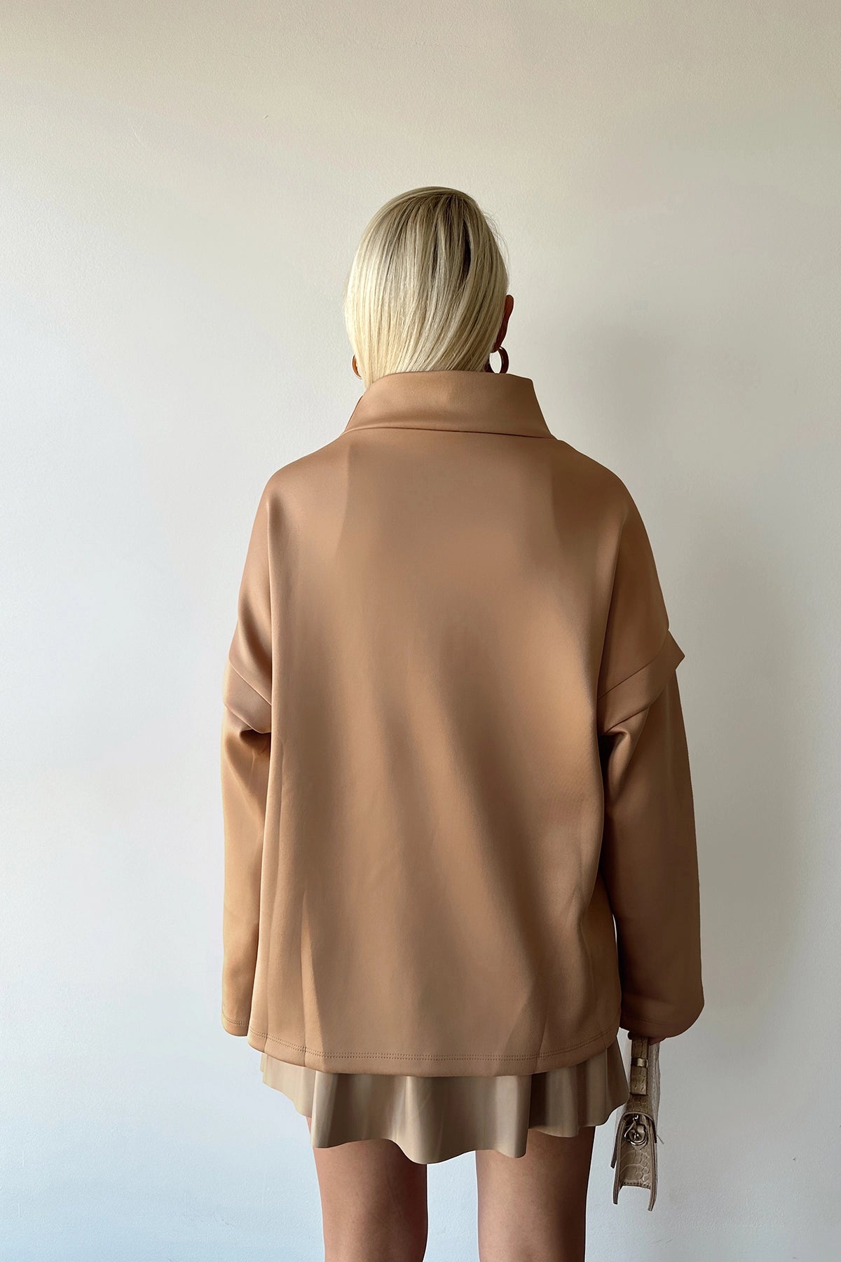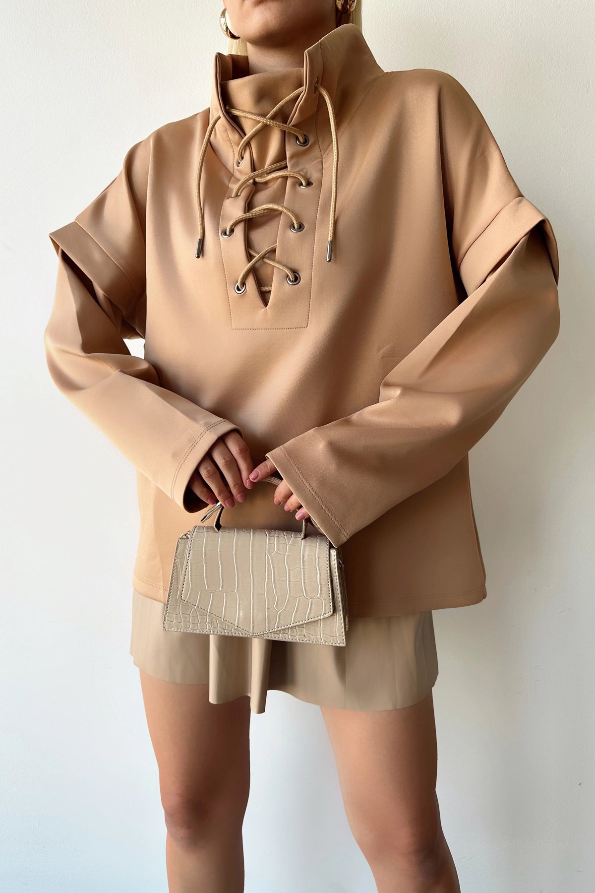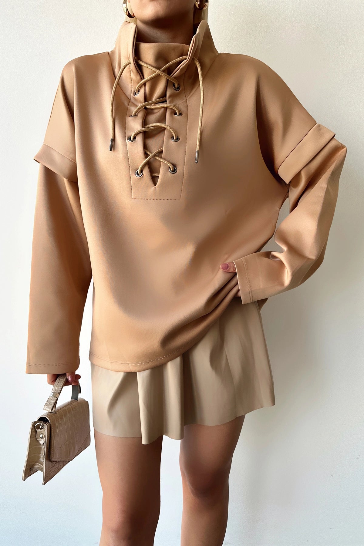 Biscuit High Neck Bird's Eye Lace-Up Scuba Sweatshirt
