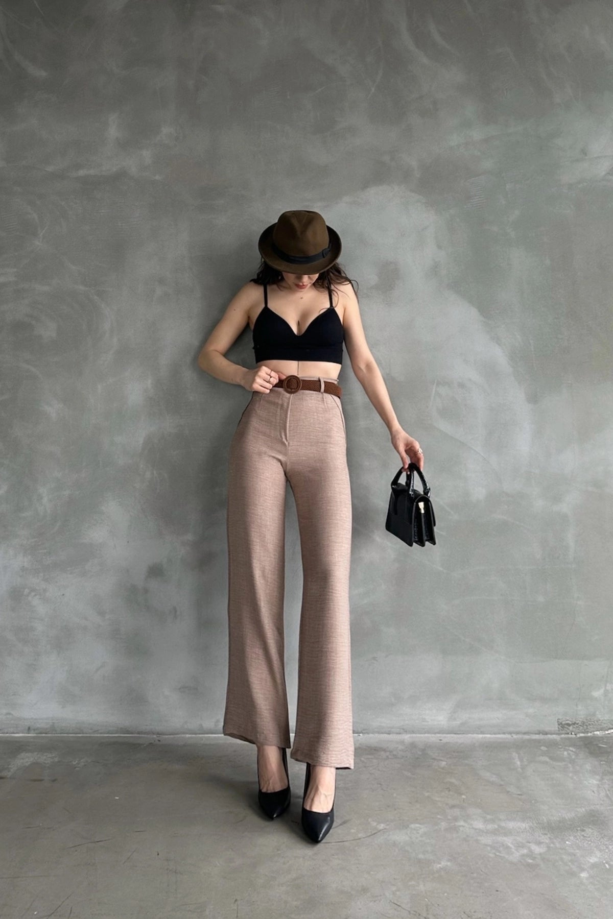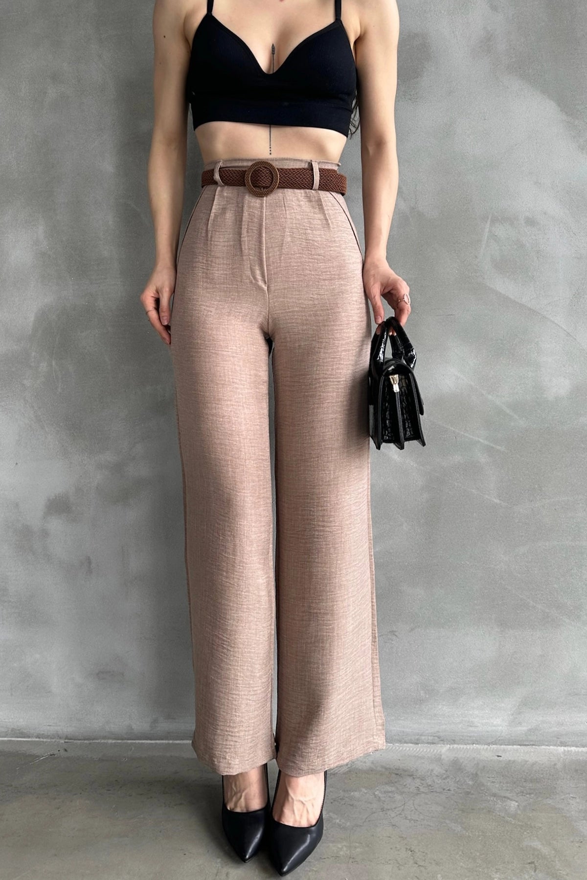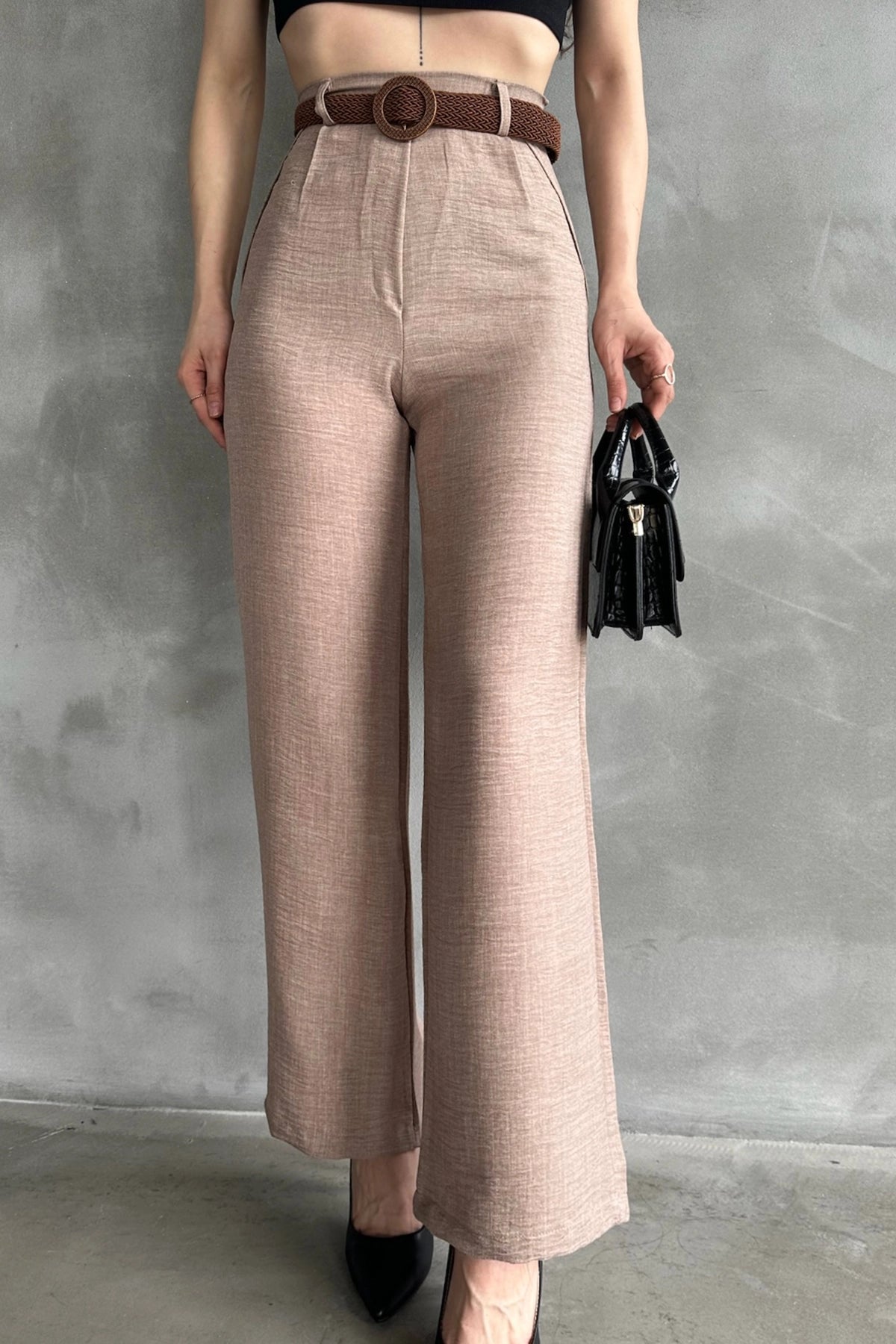 Biscuit High-Waisted Linen Trousers BCDF-241103 - Anzio