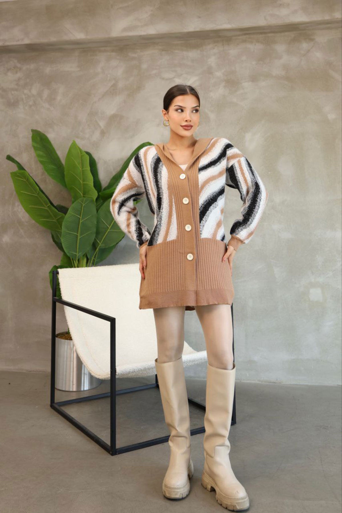 Biscuit Patterned Button Detailed Knit Cardigan BCES-252025 - Rocky Mount