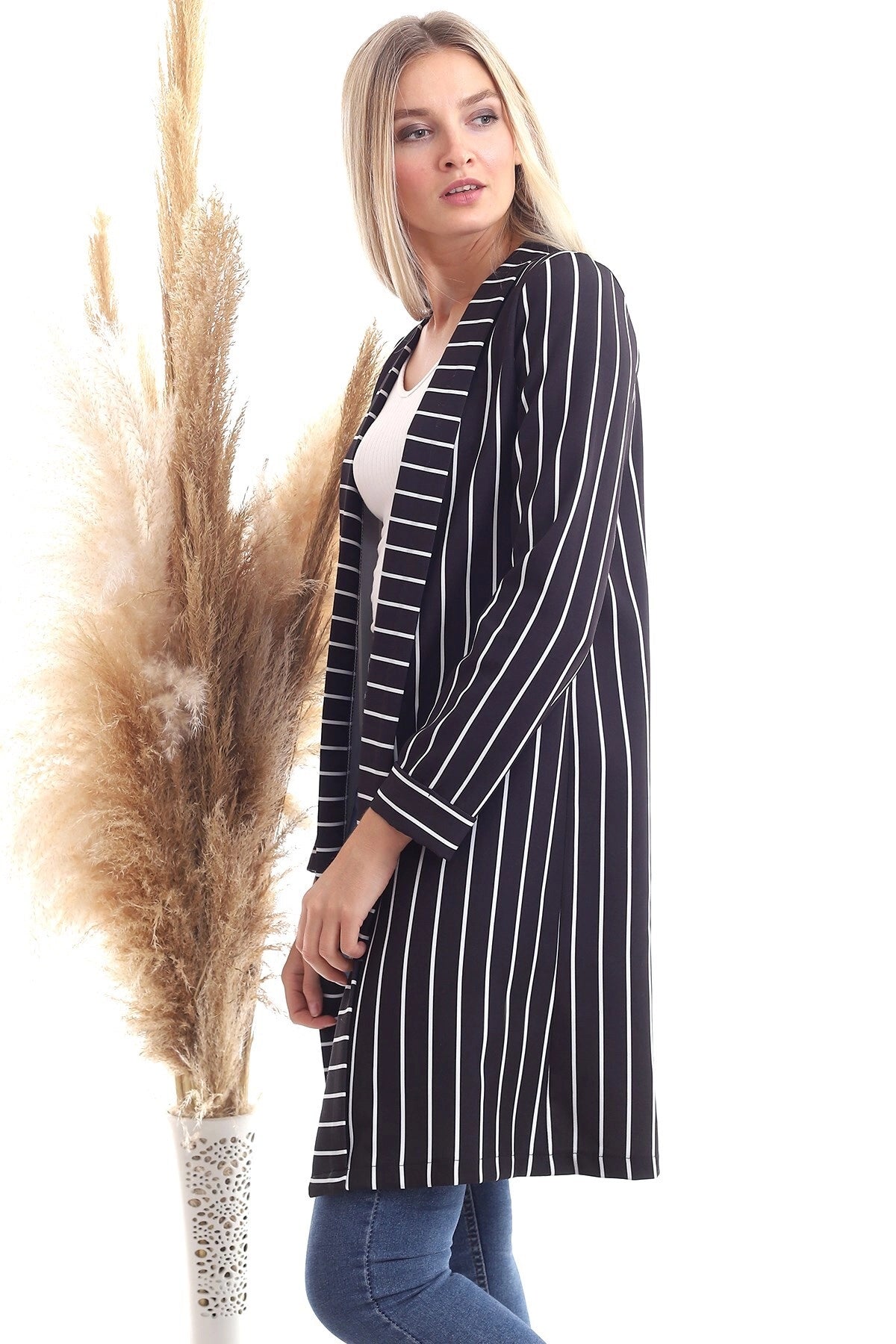 Black and White Striped Long Coat CO-2520343264 - Central Islip