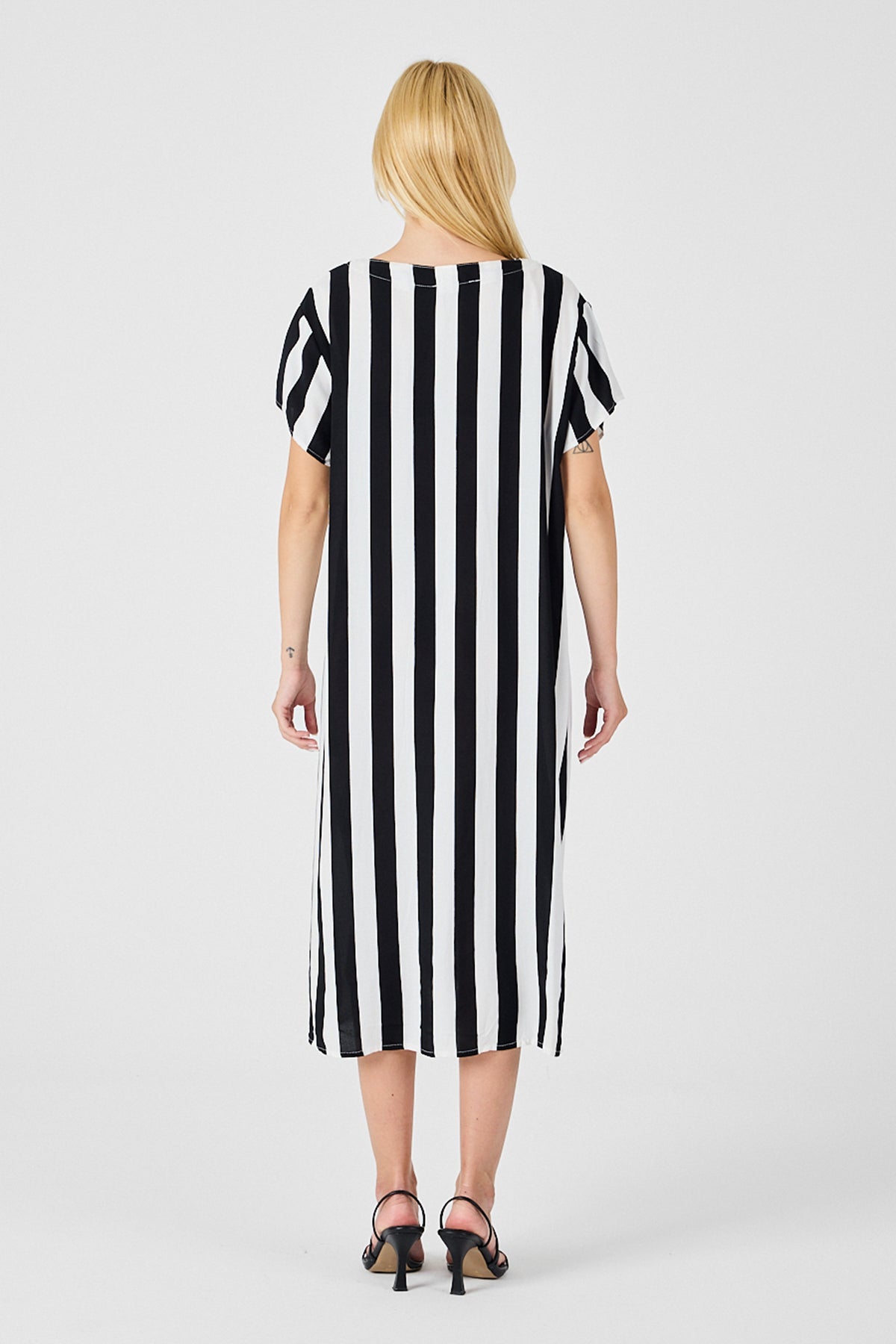 Black and White V-Neck Short Sleeve Loose Fit Dress BCVL-254003 - Berwyn