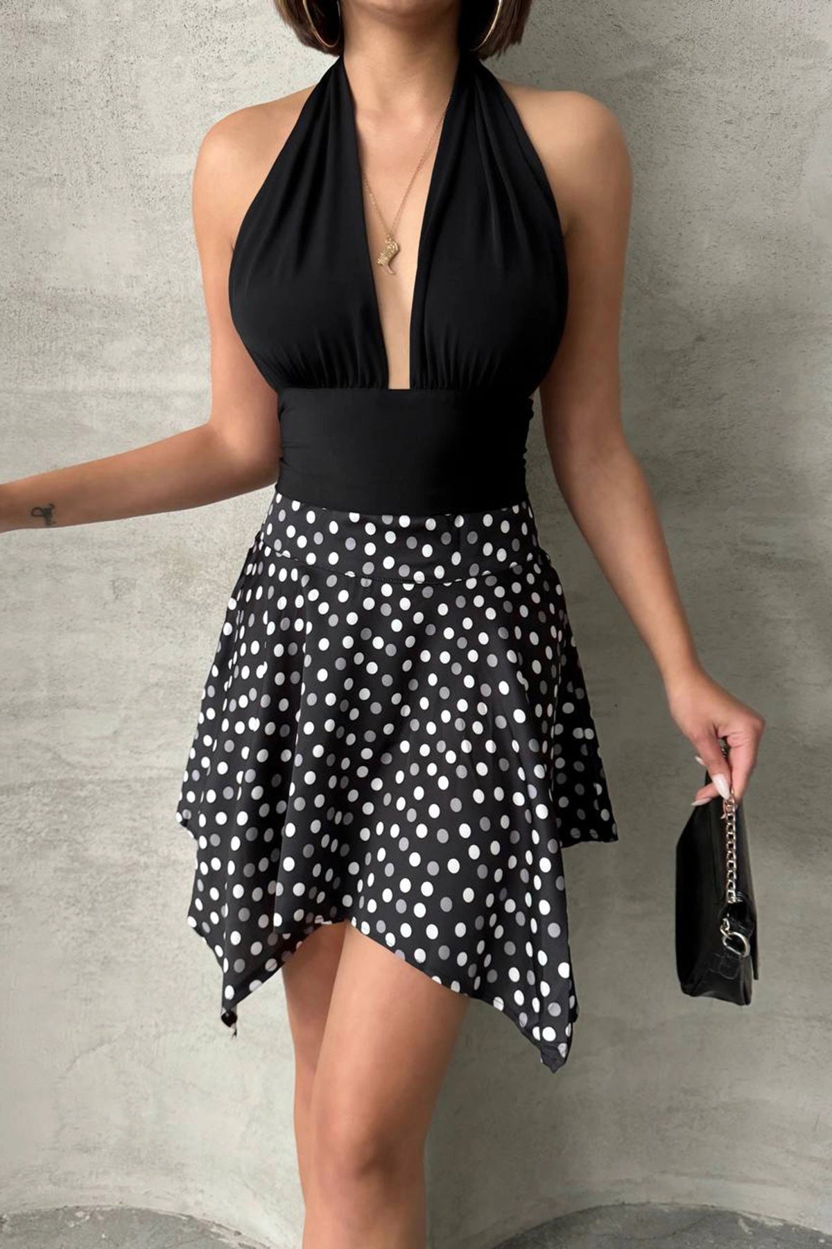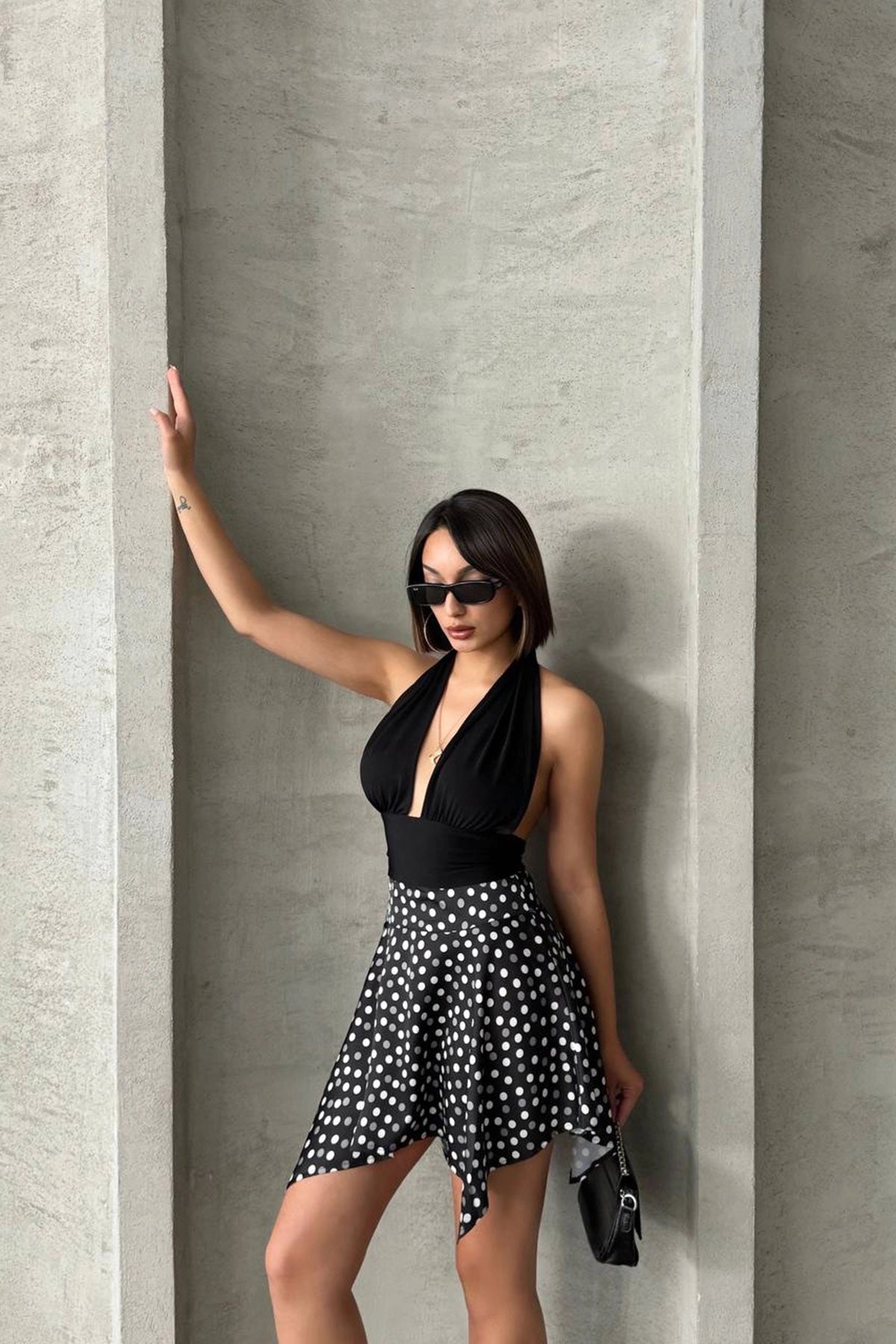 Black Asymmetric Cut Polka Dot Skirt BCHN-2525900 - Huntsville