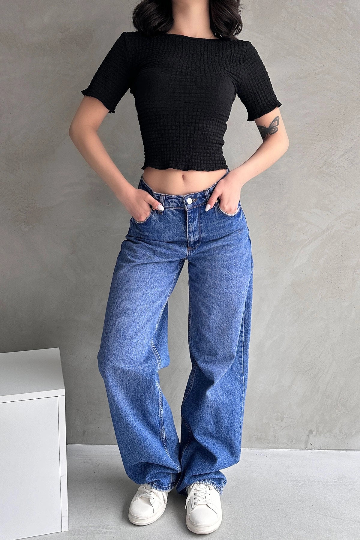 Black Backless Basic Waffle Blouse BCDF-252170 - Hampton