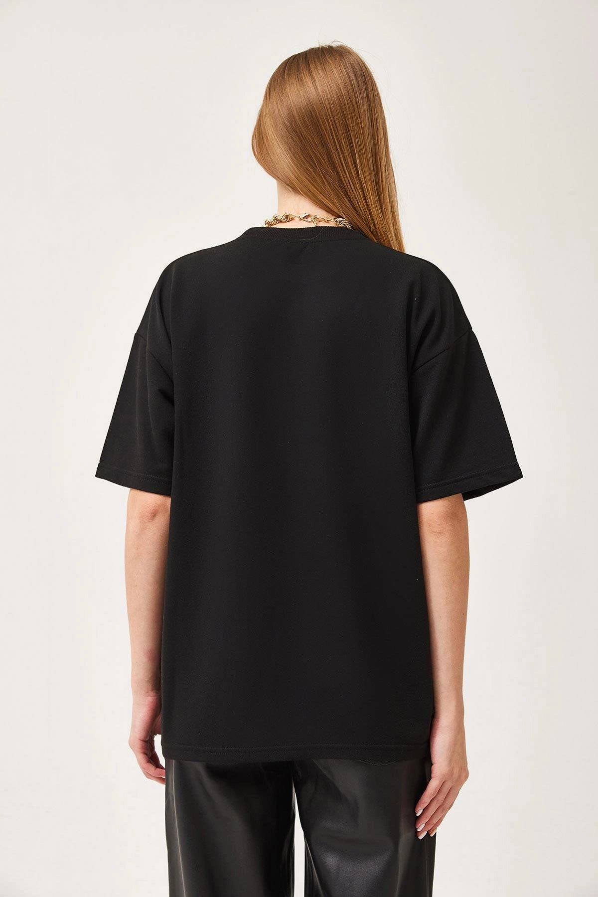 Black Bicycle Collar Basic 2 Thread Comfortable Fit T-Shirt