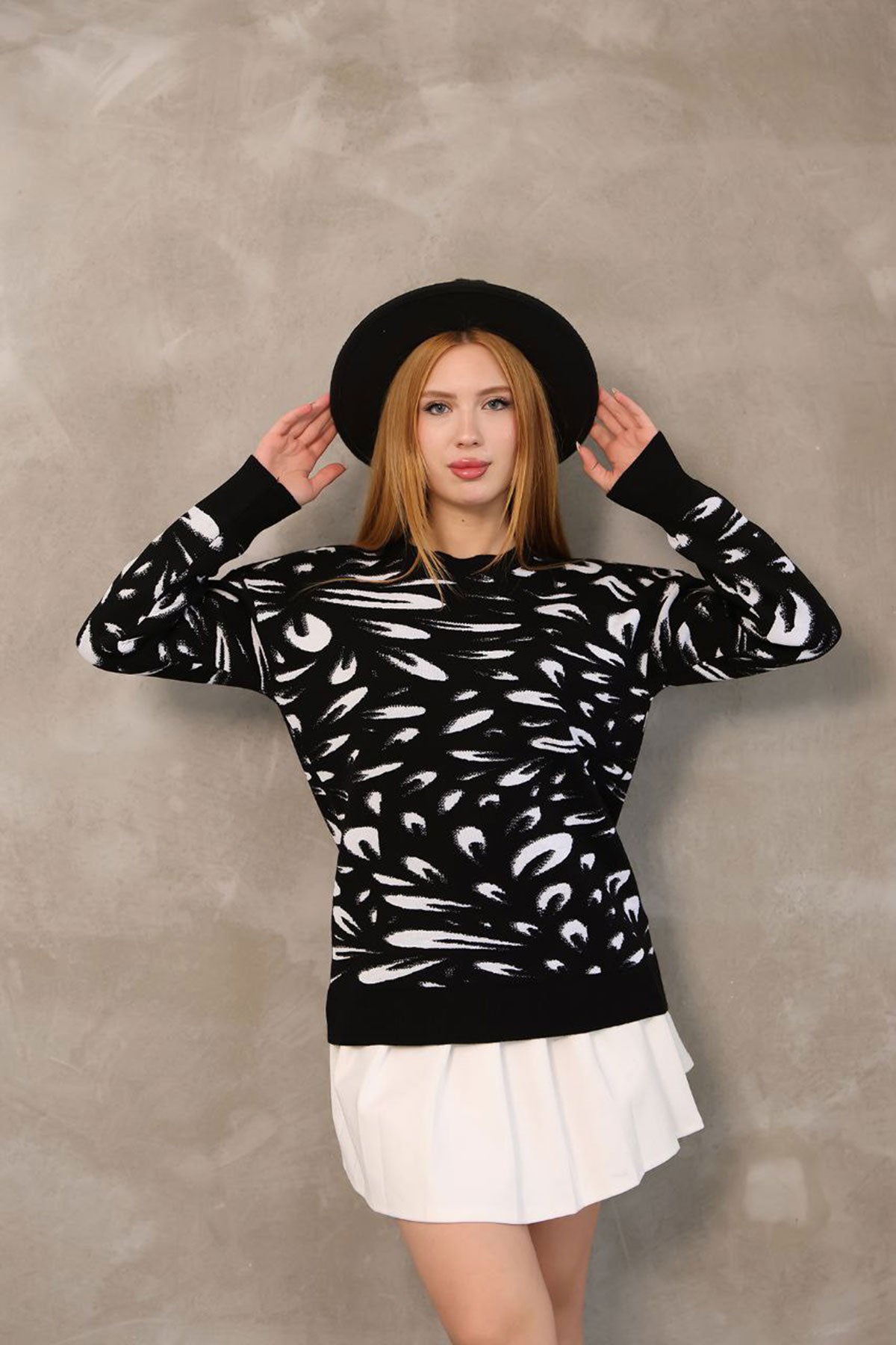 Black Bicycle Collar Patterned Sweater BCES-252032 - Estero