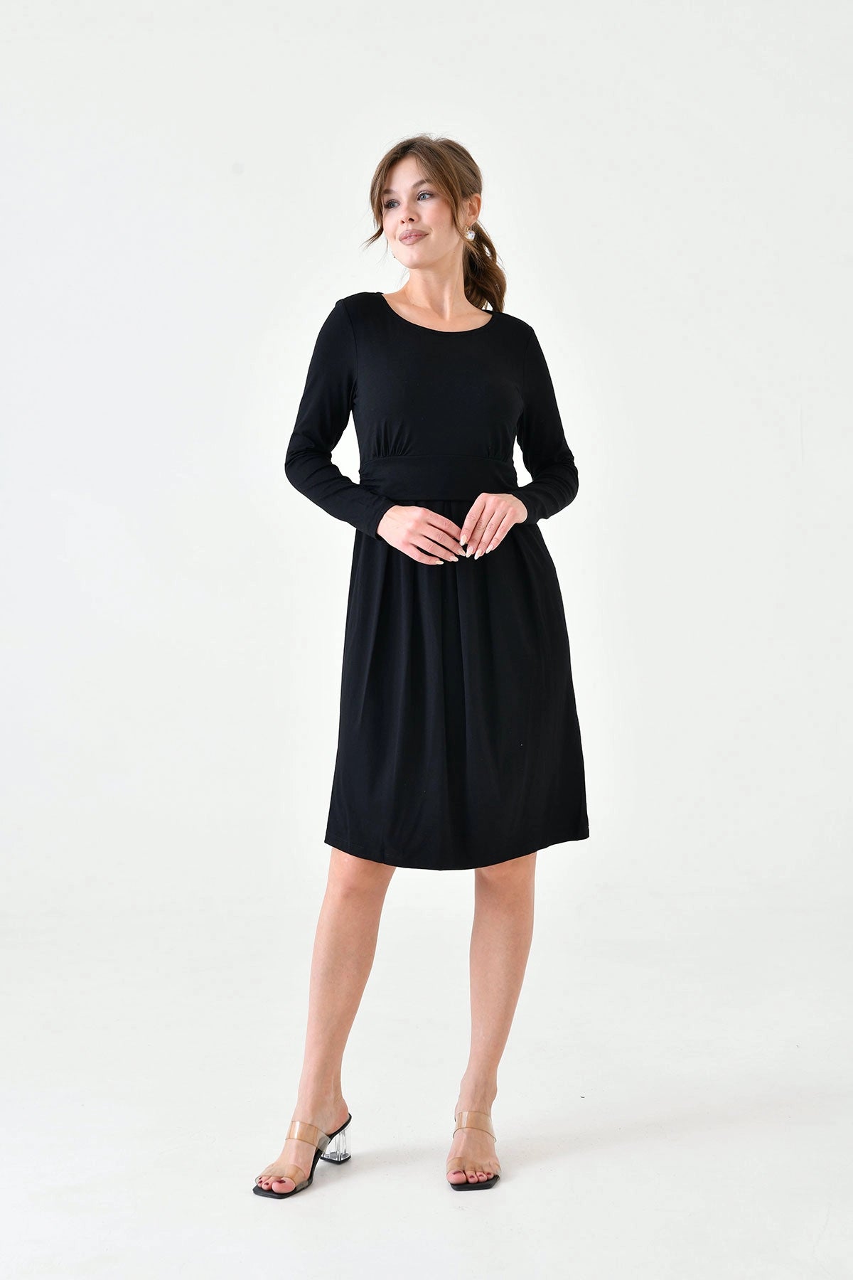 Black Bicycle Collar Pleated Wide Cut Maternity Dress BC25PKN20 - Hoogeveen