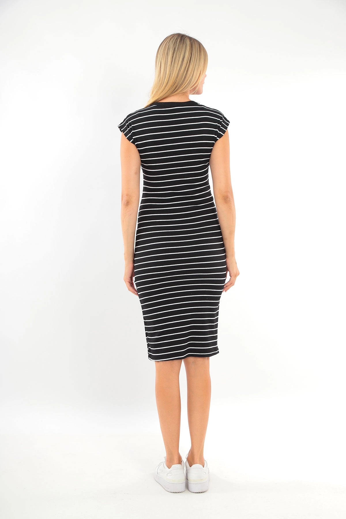 Black Bicycle Collar Short Sleeve Striped Dress
