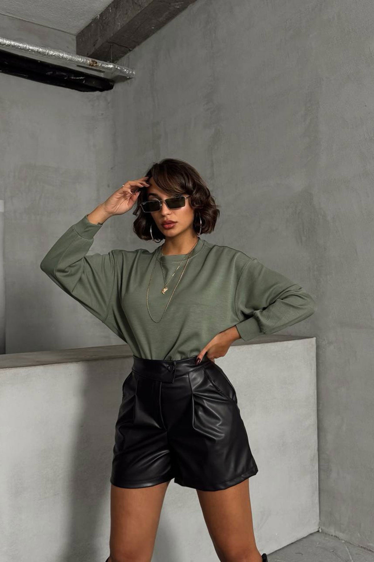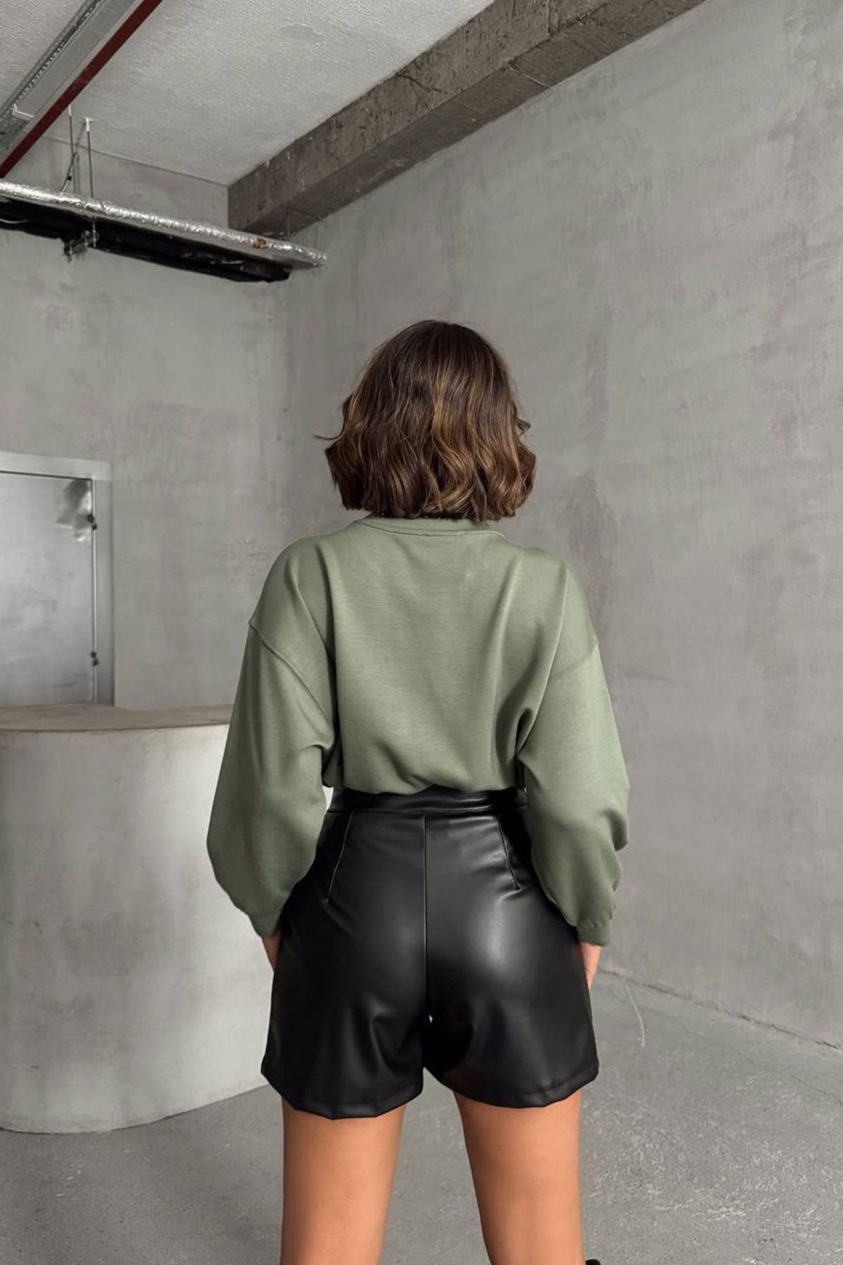 Black Double Pocket Buttoned Faux Leather Shorts BCHN-25W26433 - Alcorcón