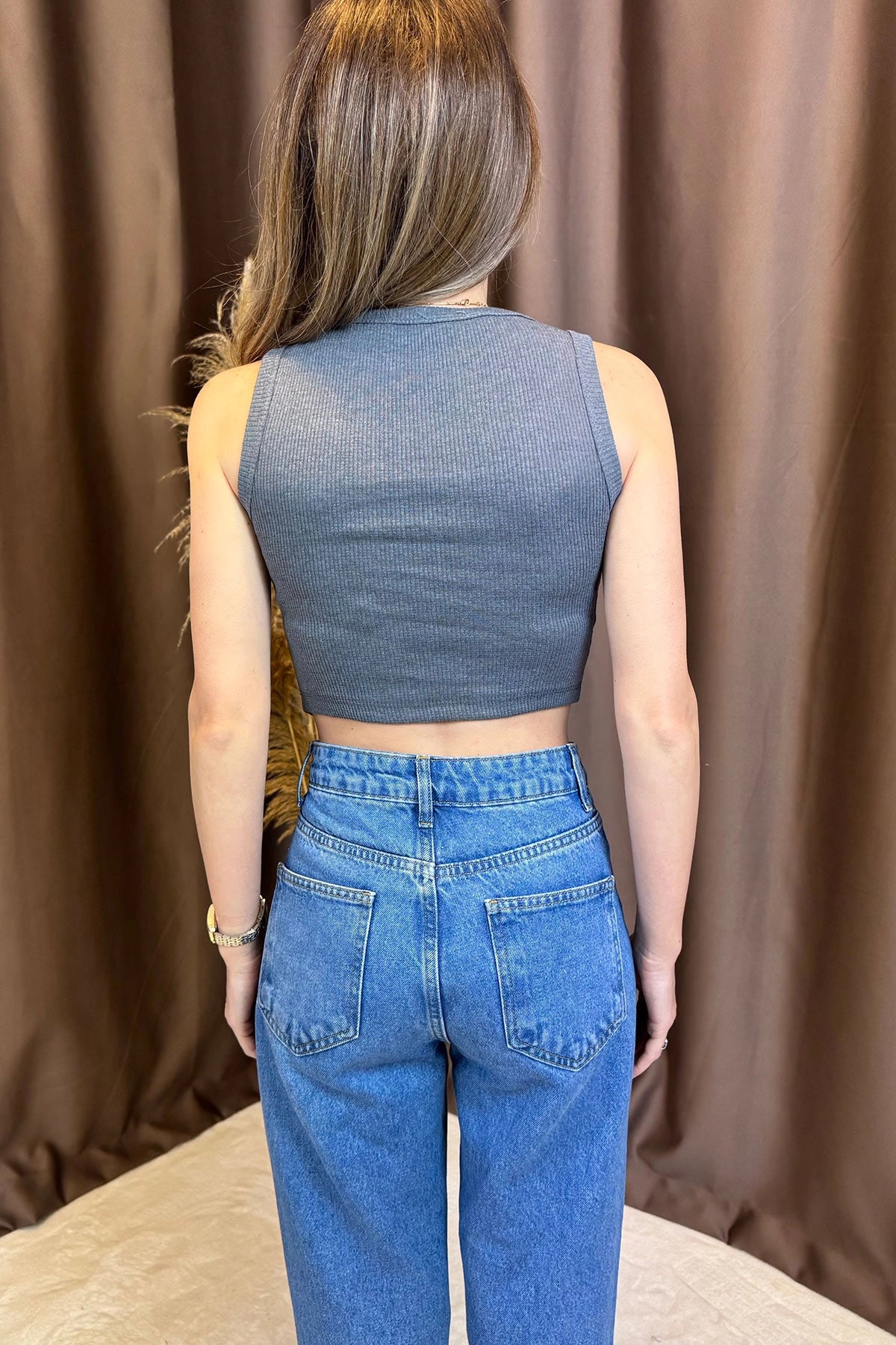 Black-Ecru-Gray 3 Piece Set Bicycle Neck Crop Sweatshirt