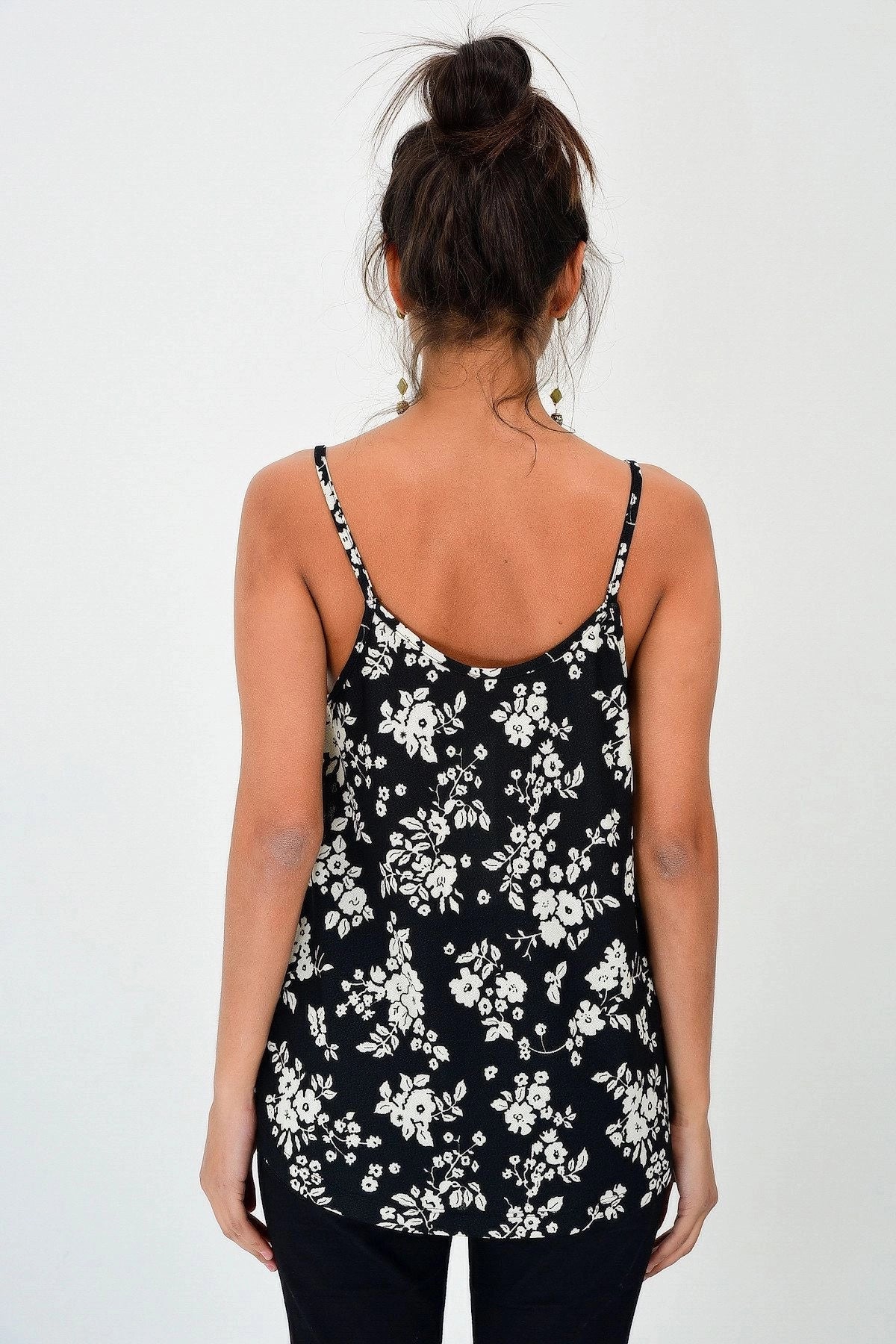 Black Flower Patterned Lace Strap Blouse BCBSK-25700-T4011400 - Chesterfield