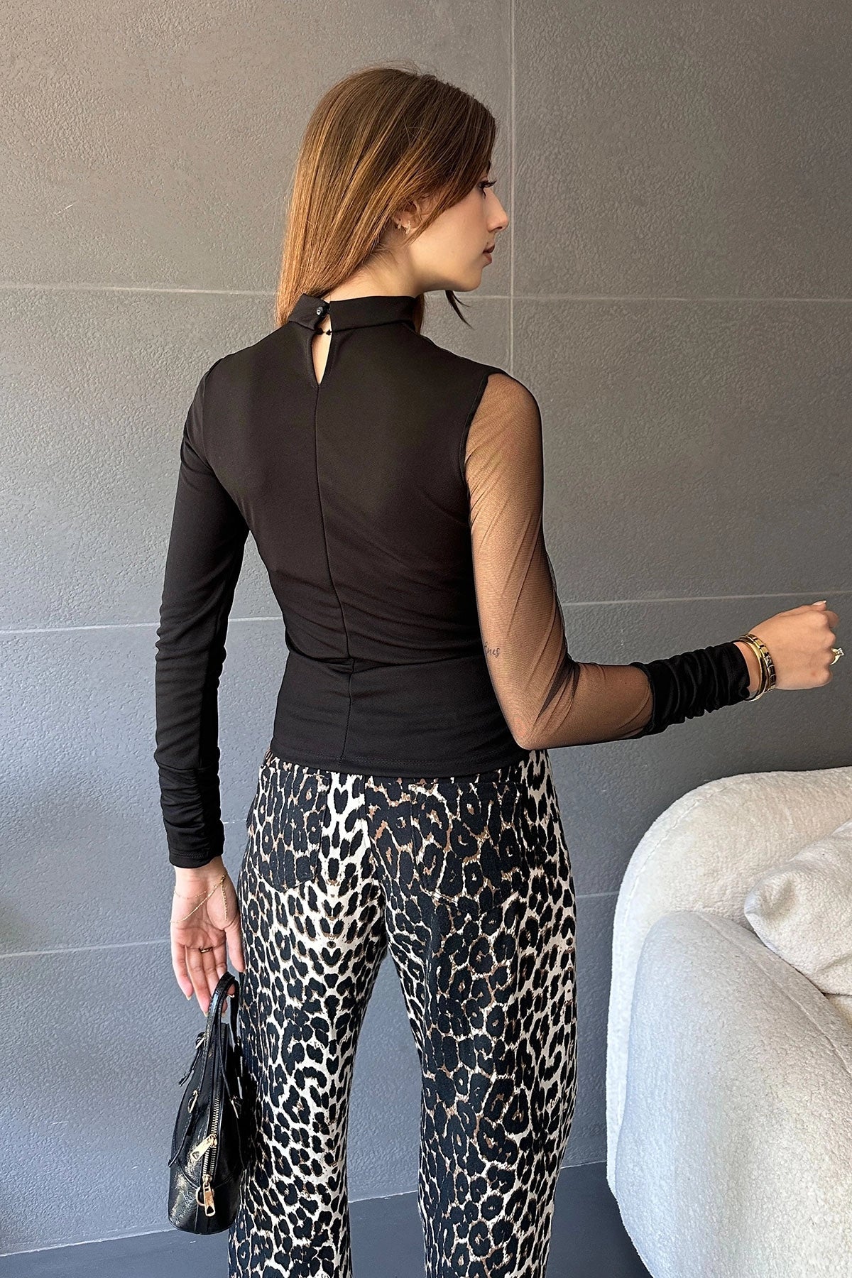 Black Half Fisherman Tulle Detailed Blouse BCDF-241099 - Owasso
