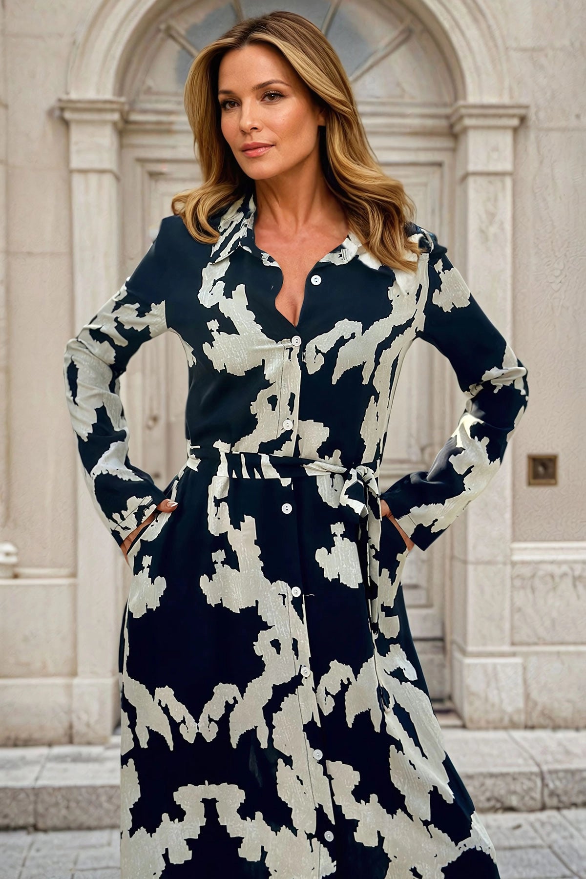 Black Lightweight Fabric Patterned Dress BCBSK-25700-3413 - Florence-Graham