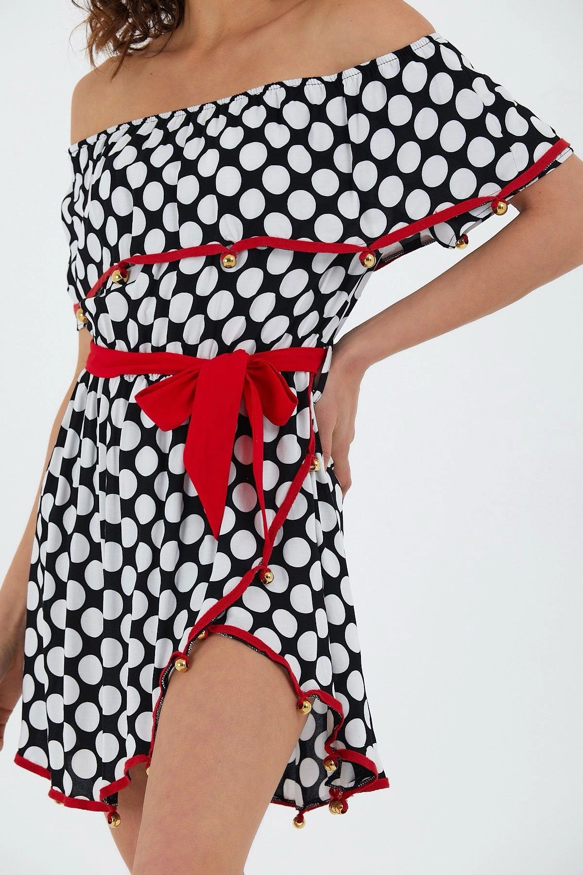 Black Madonna Collar Patterned Ruffled Woven Dress 70% Cotton 30% Polyester Length: , Bust: , Waist: , Sleeve Length: , Hip: , Hem: , Model Measurements: Height: 1.70 Cm Bust: 80 Cm Waist: 58 Cm Hips: 89 Cm. Colors may vary due to light differences in studio shots.