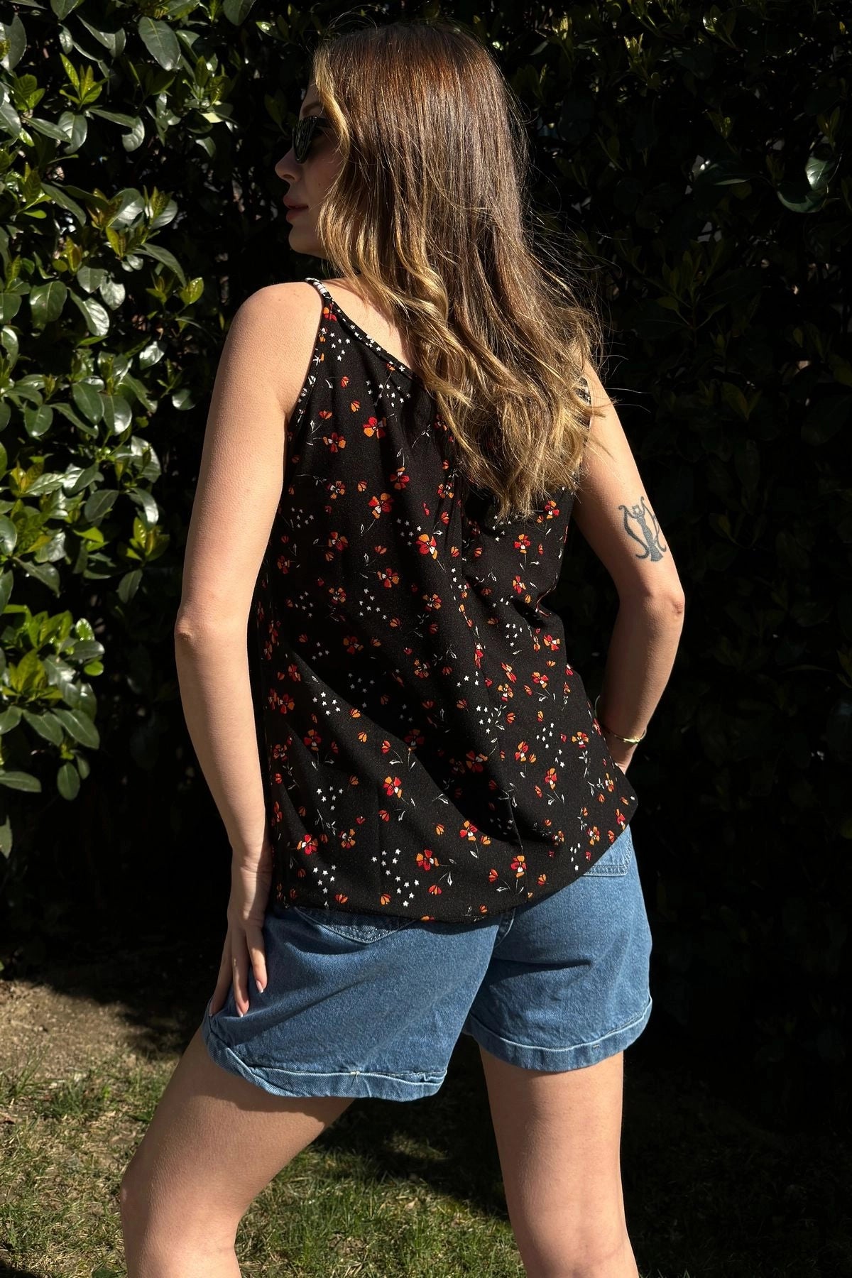 Black Orange Soft Textured Sleeveless Blouse BCBSK-25700-3407 - Cedar Falls