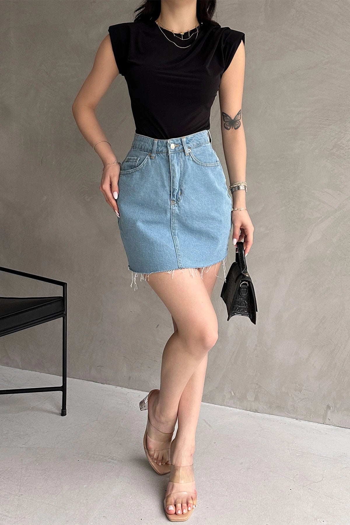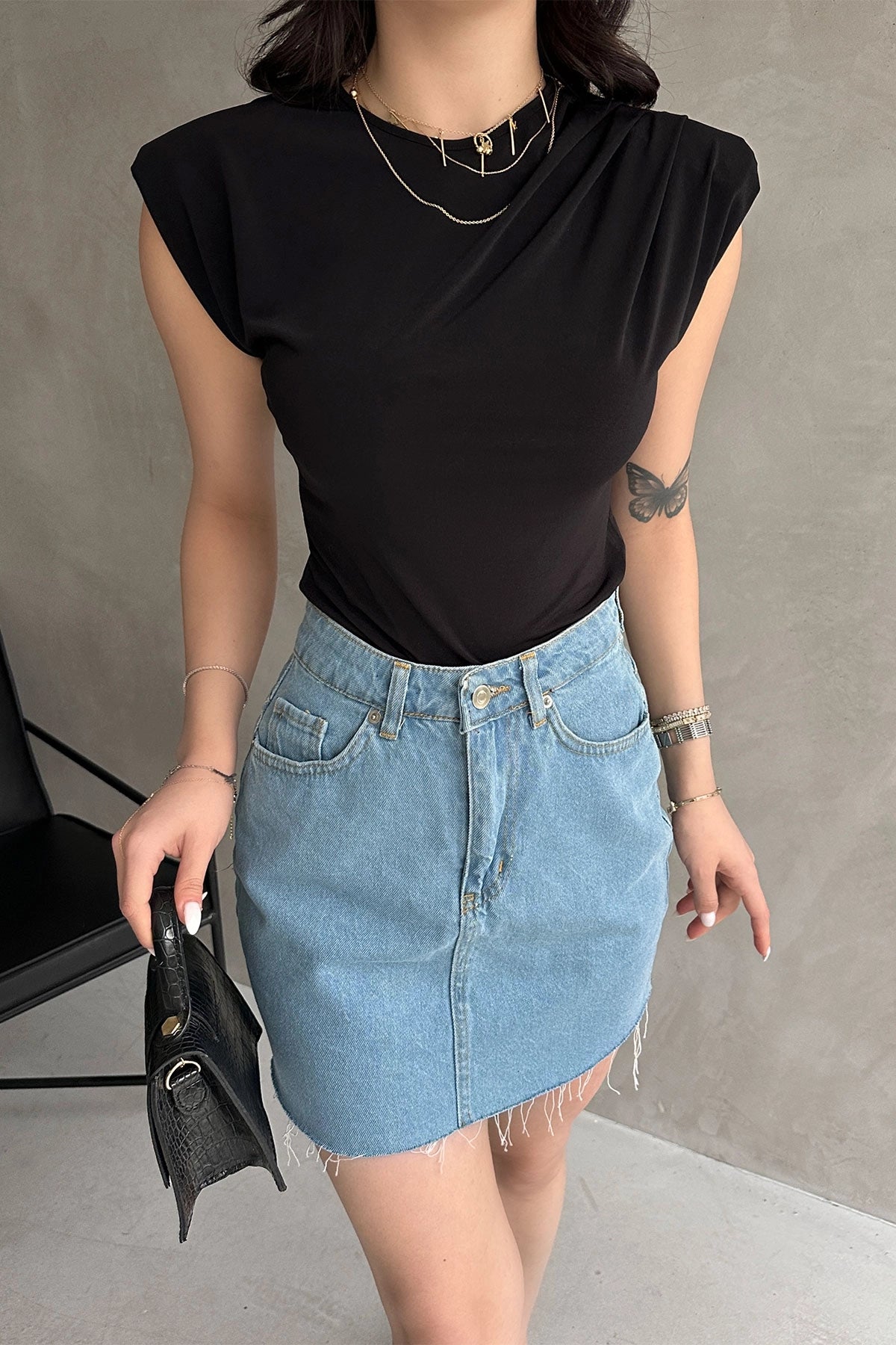 Black Padded Shoulder Buzzy Blouse