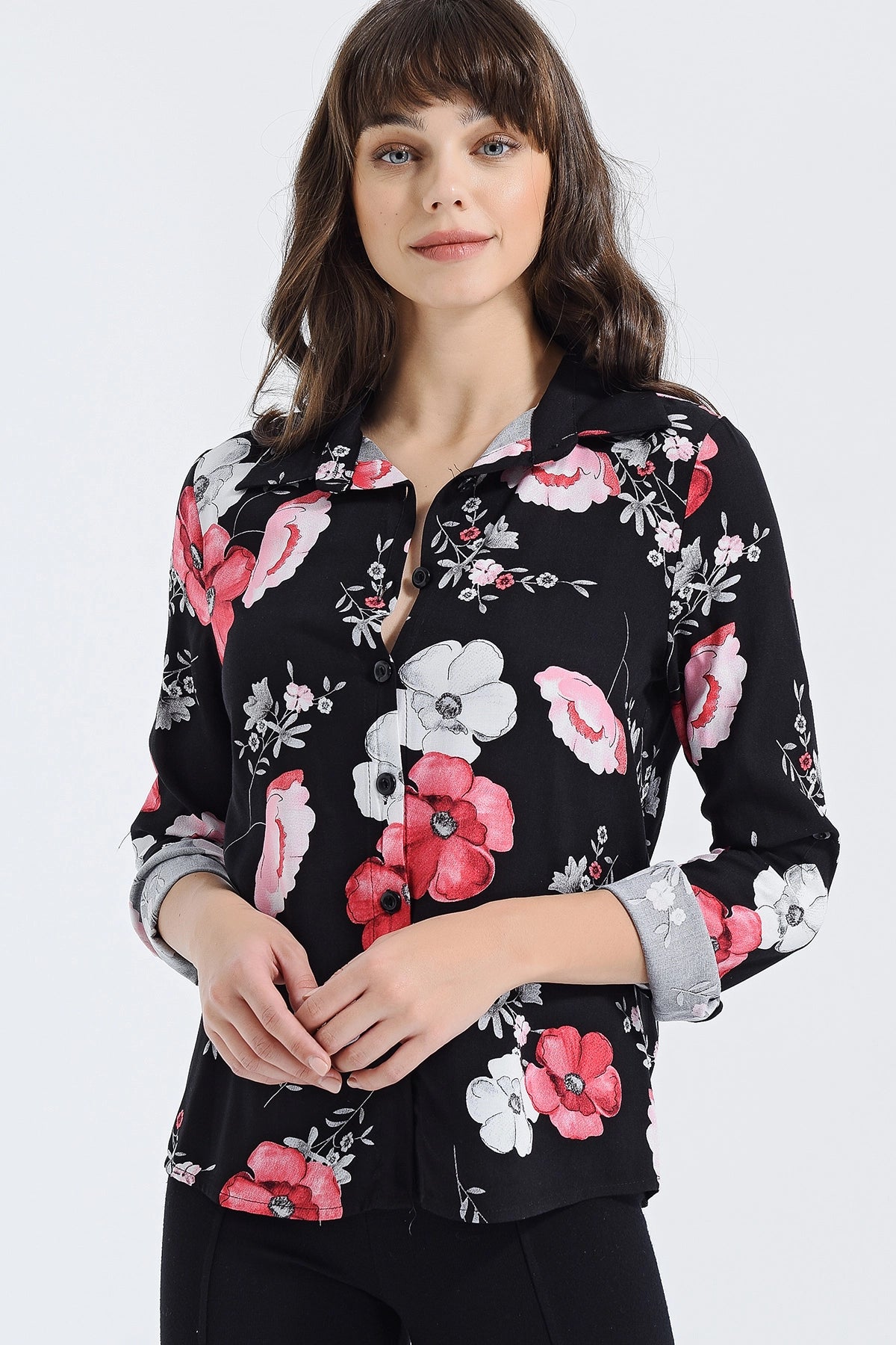 This modern style long-sleeved shirt with flower pattern is an ideal choice for a chic and elegant look. Black color is always a classic and sophisticated choice that perfectly complements any style or season. The fabric content of this shirt is 60% Polyester and 40% Cotton. Polyester provides durability and easy care features, while cotton offers softness and breathability. This combination provides a comfortable wearing experience and ensures the longevity of the shirt. The flower pattern adds a stylish touch to the shirt and highlights its modern style. The details of the pattern are intricately designed and complete the overall aesthetic of the shirt. This shirt is versatile as it can be worn for a wide range of occasions from daily wear to special events. The long-sleeved design provides extra protection during seasonal transitions and creates an elegant silhouette on the arms to complement your style. This shirt also features a stylish collar detail that helps you achieve a polished look. This black modern style long-sleeved shirt with flower pattern offers both comfort and elegance. Whether worn for daily wear or a special event, it is a versatile option that will always complement your style and make you stand out.