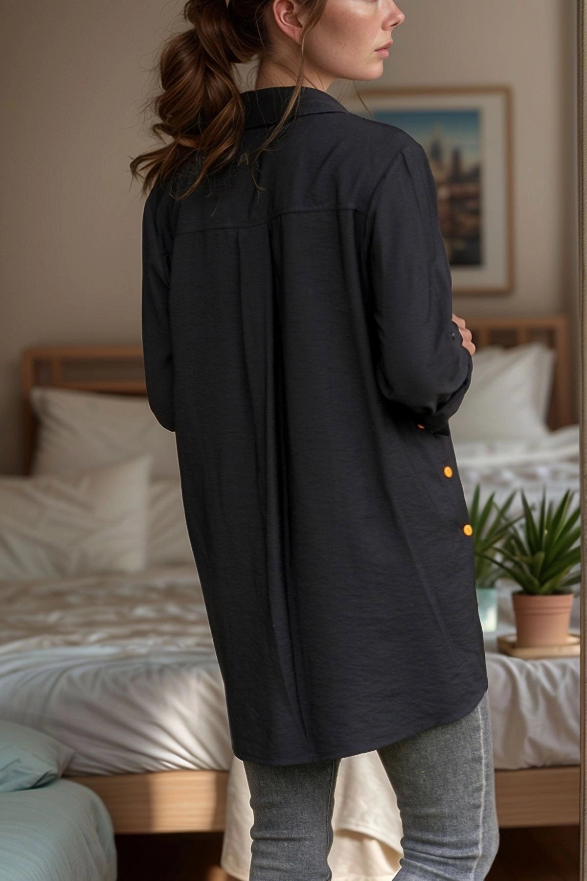 Black Pockets Embroidered Oversized Comfort Fit Shirt BCBSK-25700-K6111 - Kamianske