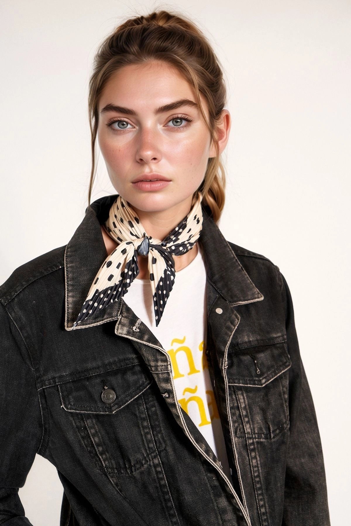 Black Polka Dot Patterned Pleated Bandana Scarf BCNSV-2513472 - Doetinchem