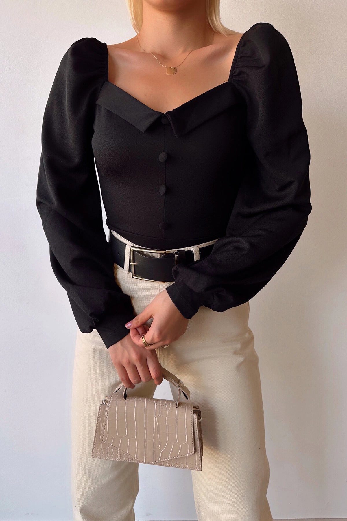 Black Princess Front Button Detailed Crepe Blouse