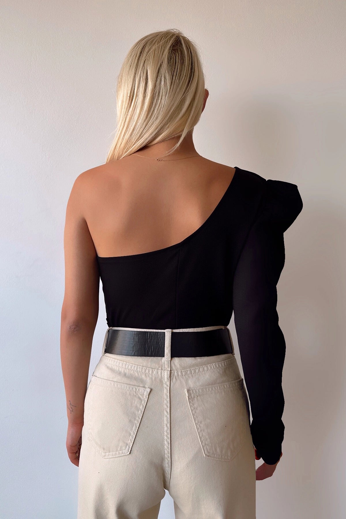 Black Princess Sleeve Shoulder Pad Outcut Crepe Blouse BCDF-231005 - Alès