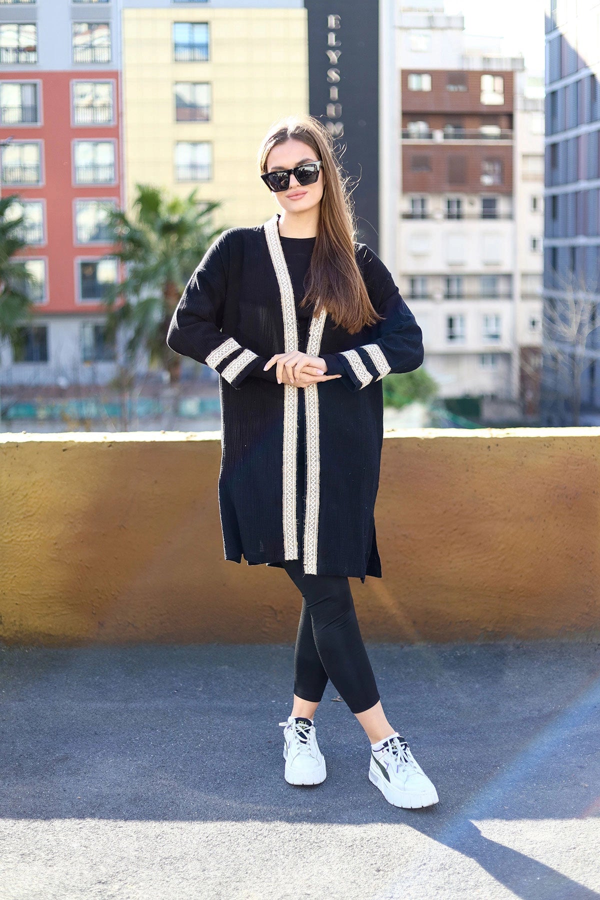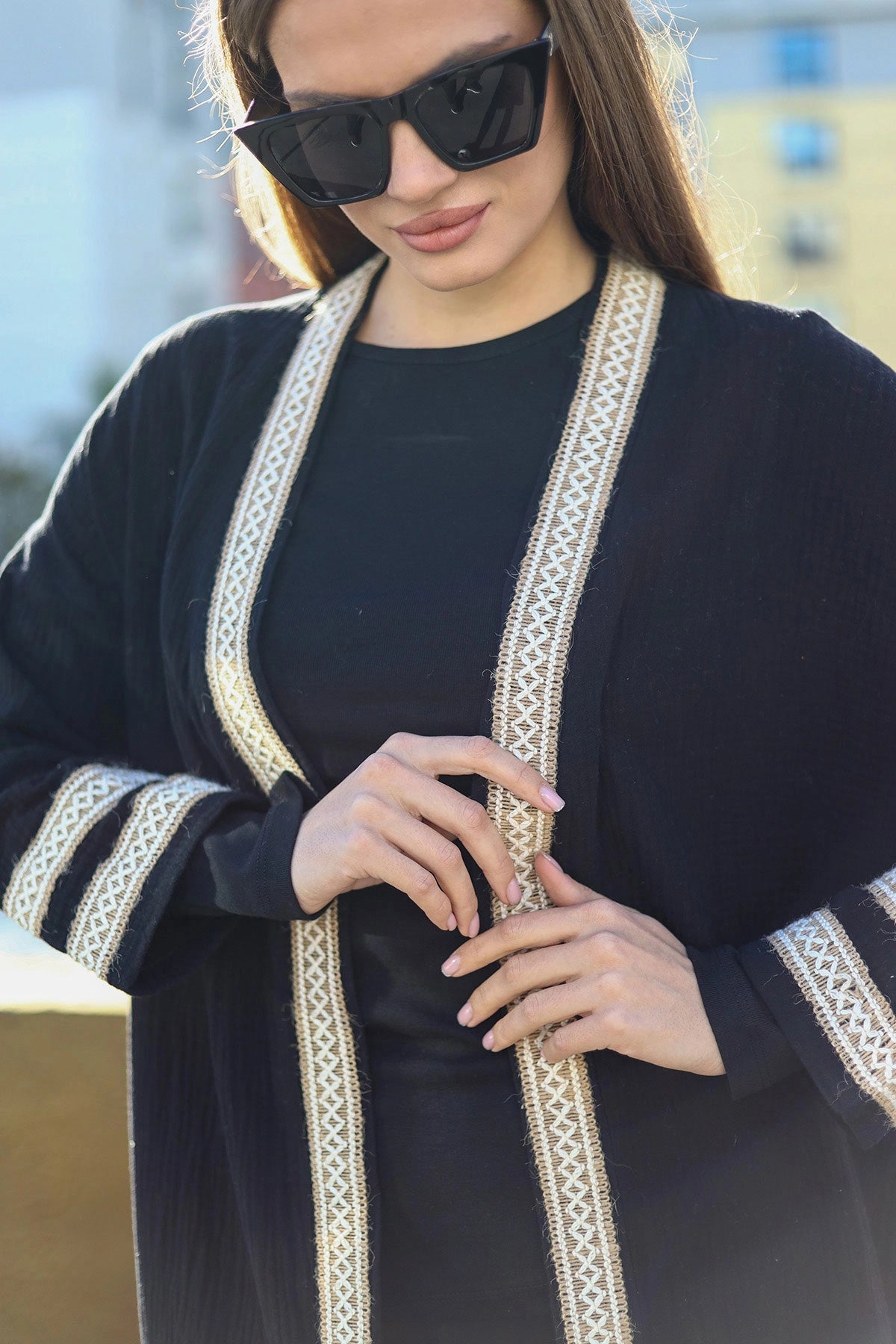 Model's Measurements: Height: 1.67 cm, Bust: 83cm, Waist: 62 cm, Hips: 92 cm || Size of the Product on the Model: 36 (Small)