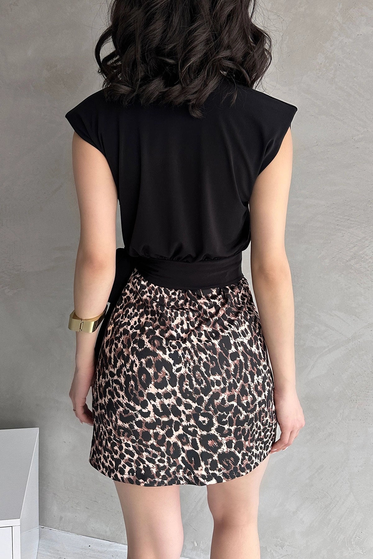 Black Shoulder Padded Waist Belted Blouse BCDF-252160 - Rotorua