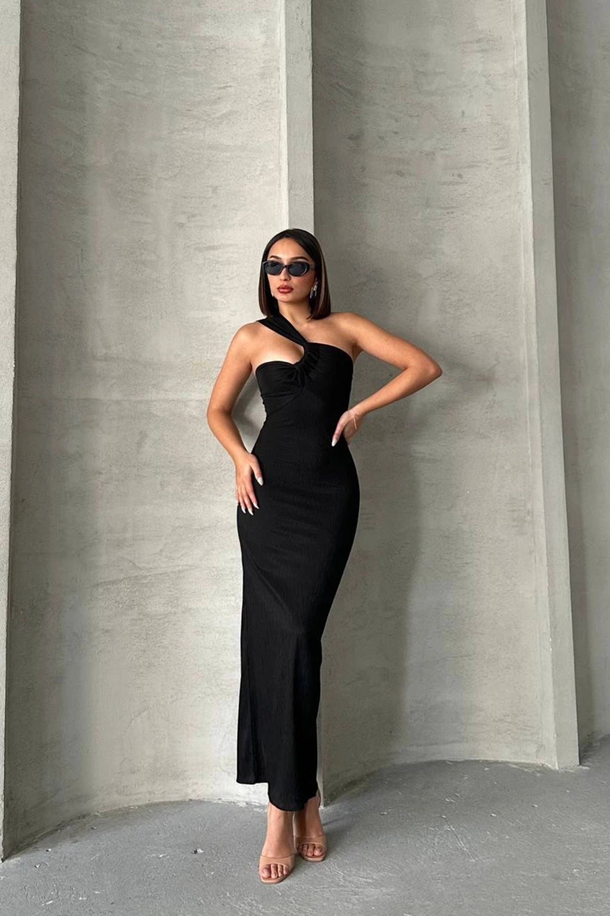 Black Single Shoulder Detail Maxi Dress BCHN-2525455 - Middletown