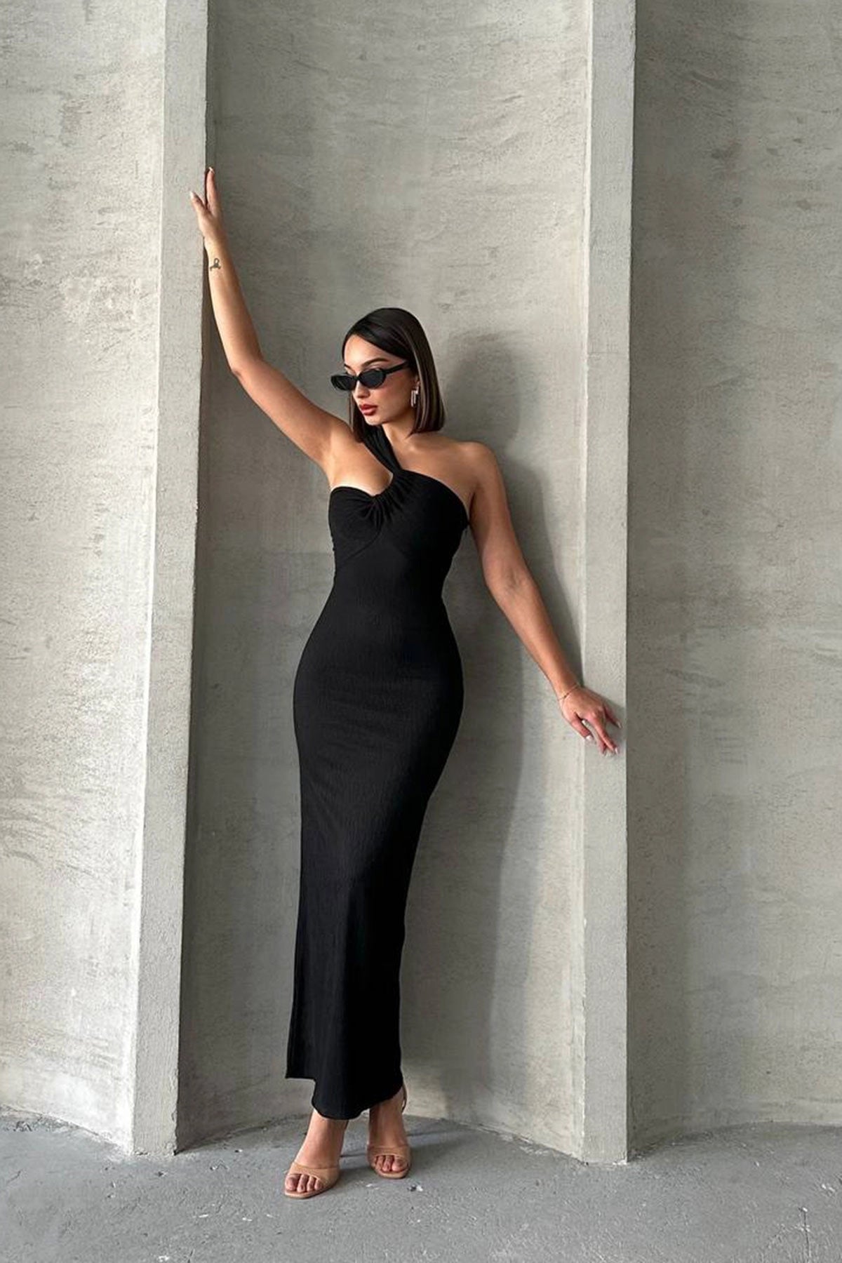 Black One Shoulder Detail Maxi Dress 50% Cotton 50% Polyester Length: , Bust: , Waist: , Sleeve Length: , Hips: , Hem: , Model Measurements: Height: 1.70 Cm Bust: 80 Cm Waist: 58 Cm Hips: 89 Cm. Colors may vary due to light differences in studio shots.