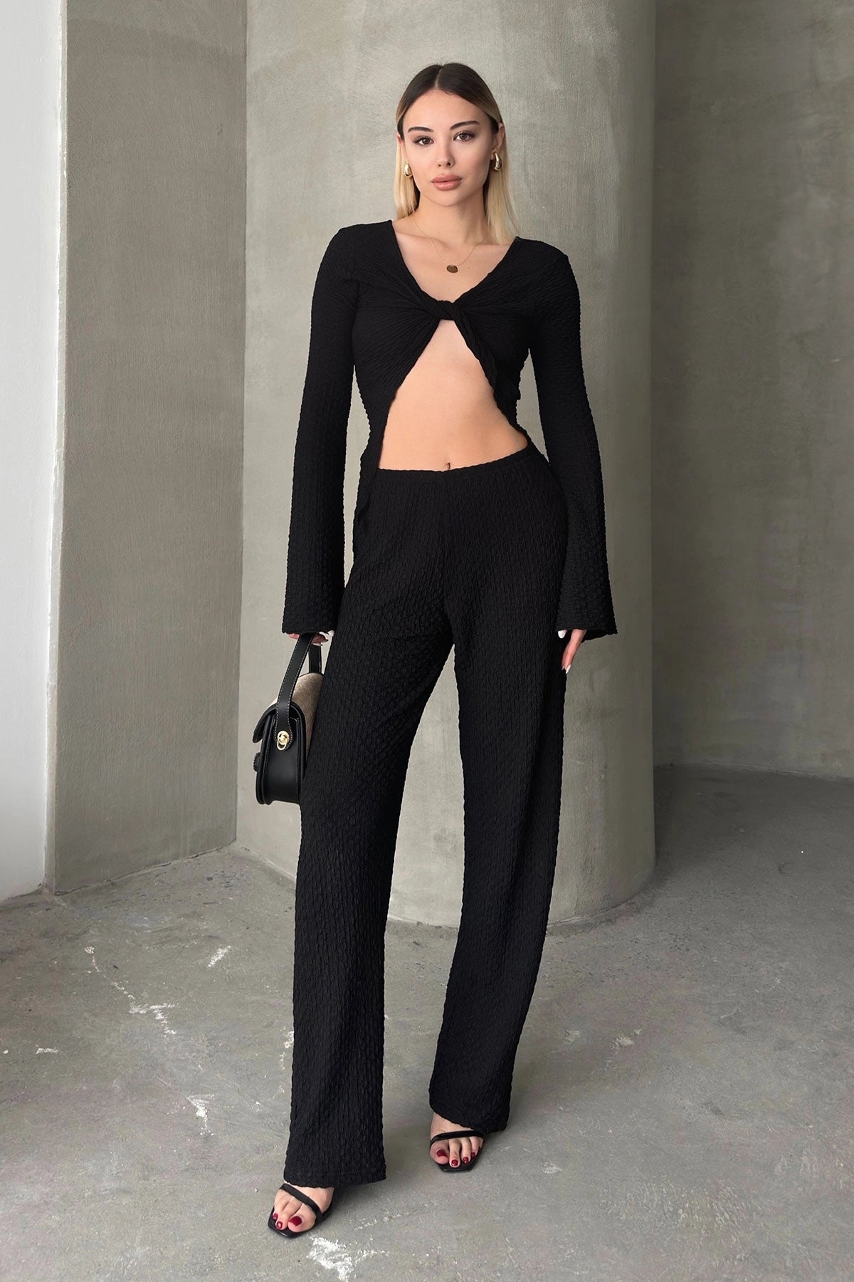 Black Spanish Arm Cold Shoulder Blouse and Palazzo Pants Set BCZK-25SA326-SA353 - Camden