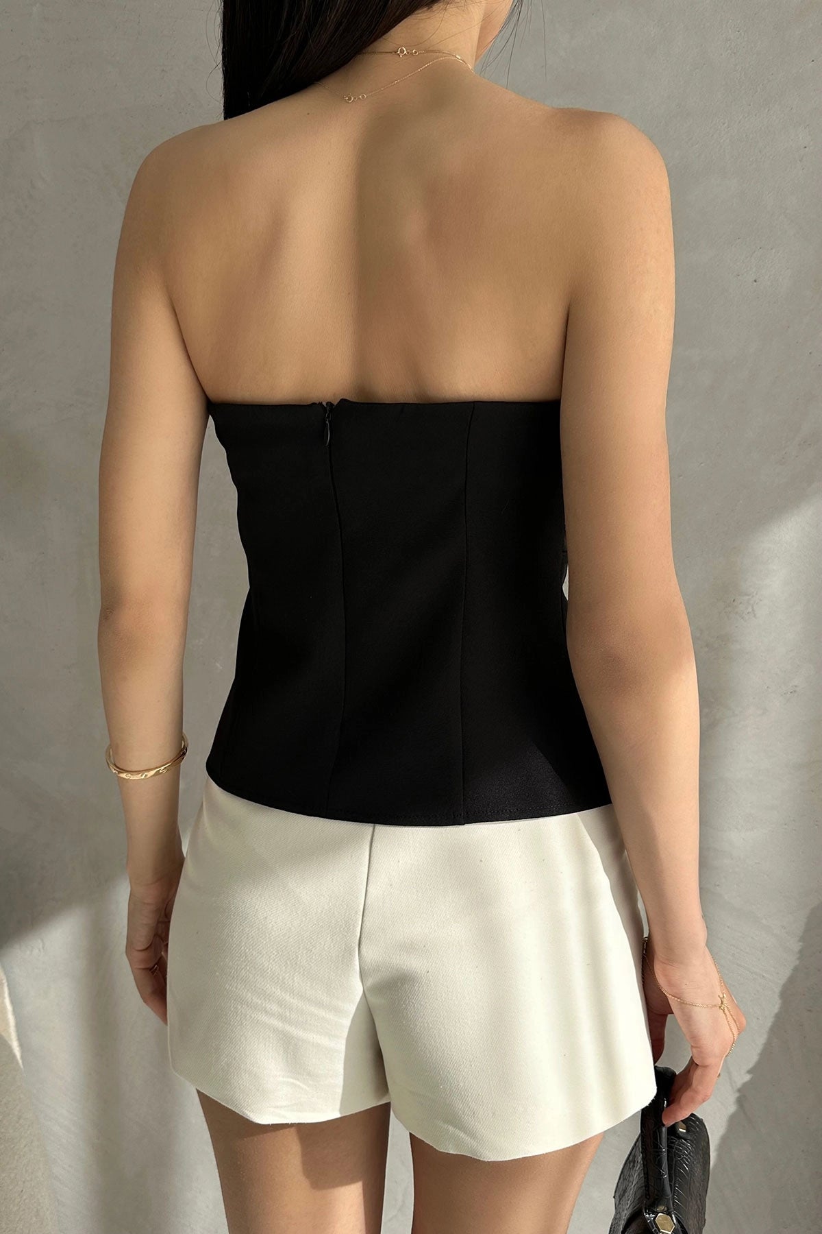 Black Strapless Fitted Thin Belt Detailed Woven Blouse BCDF-252189 - Cape Coral