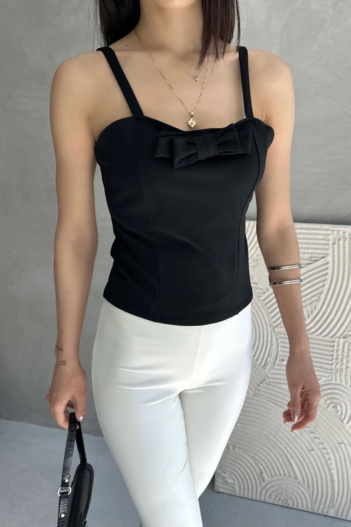 Black Strappy Bow Detail Woven Blouse