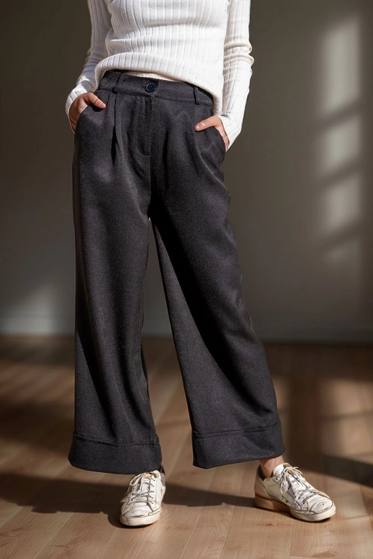 Black Textured Double Pleated Wide Leg Pants BCBSK-25700-3309 - Gütersloh