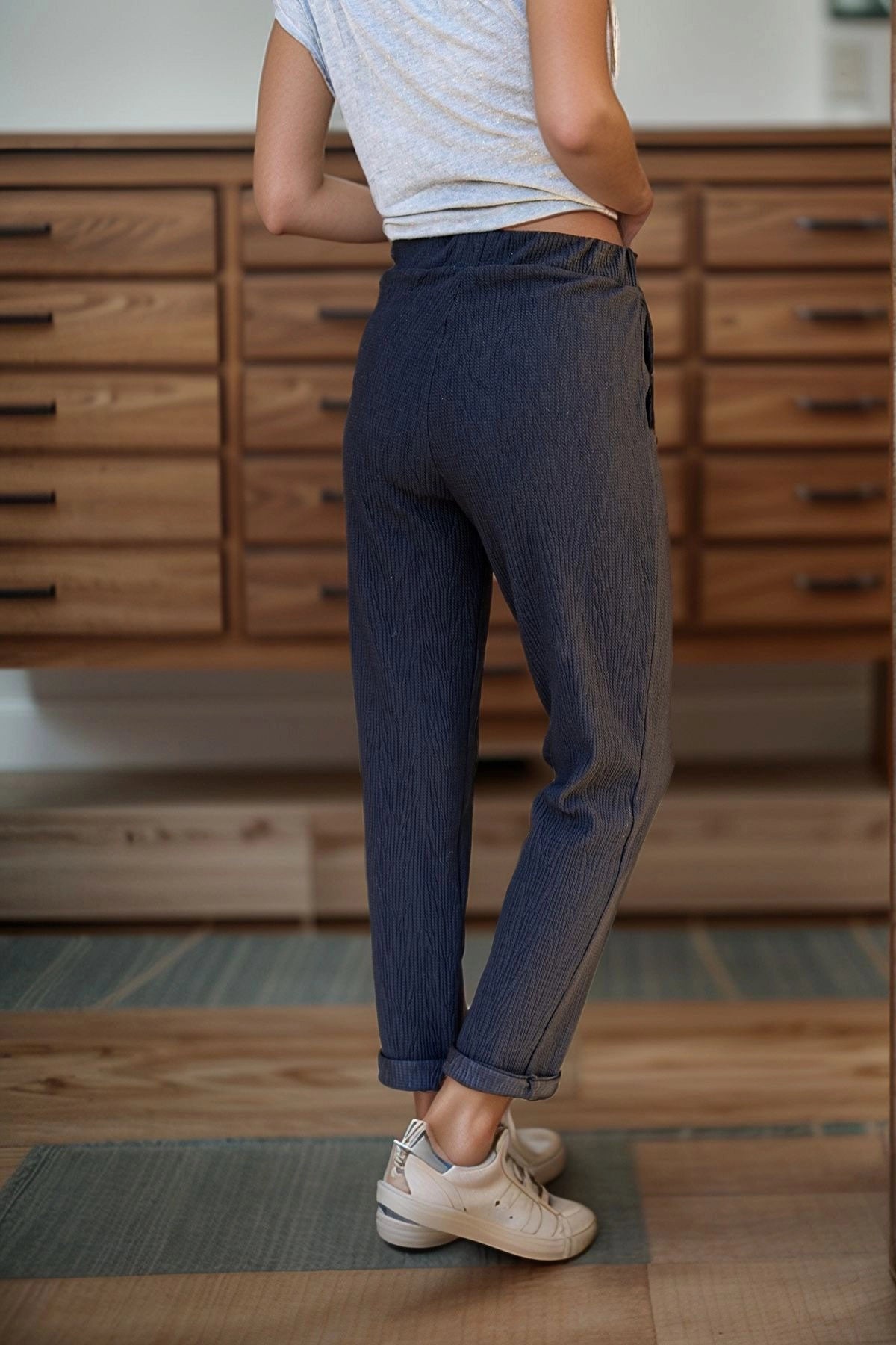 Black Textured Elastic Waist Pocketed Pants BCBSK-25700-3273 - Moita