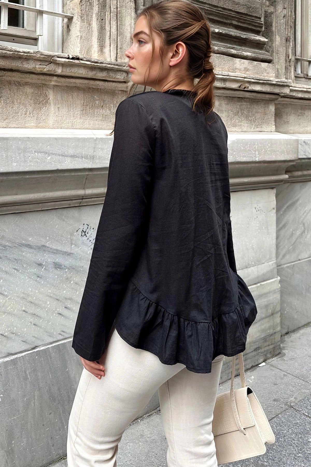 Black Tiered Ruffled Voile Blouse BCBSK-25700-3571 - Agua Prieta